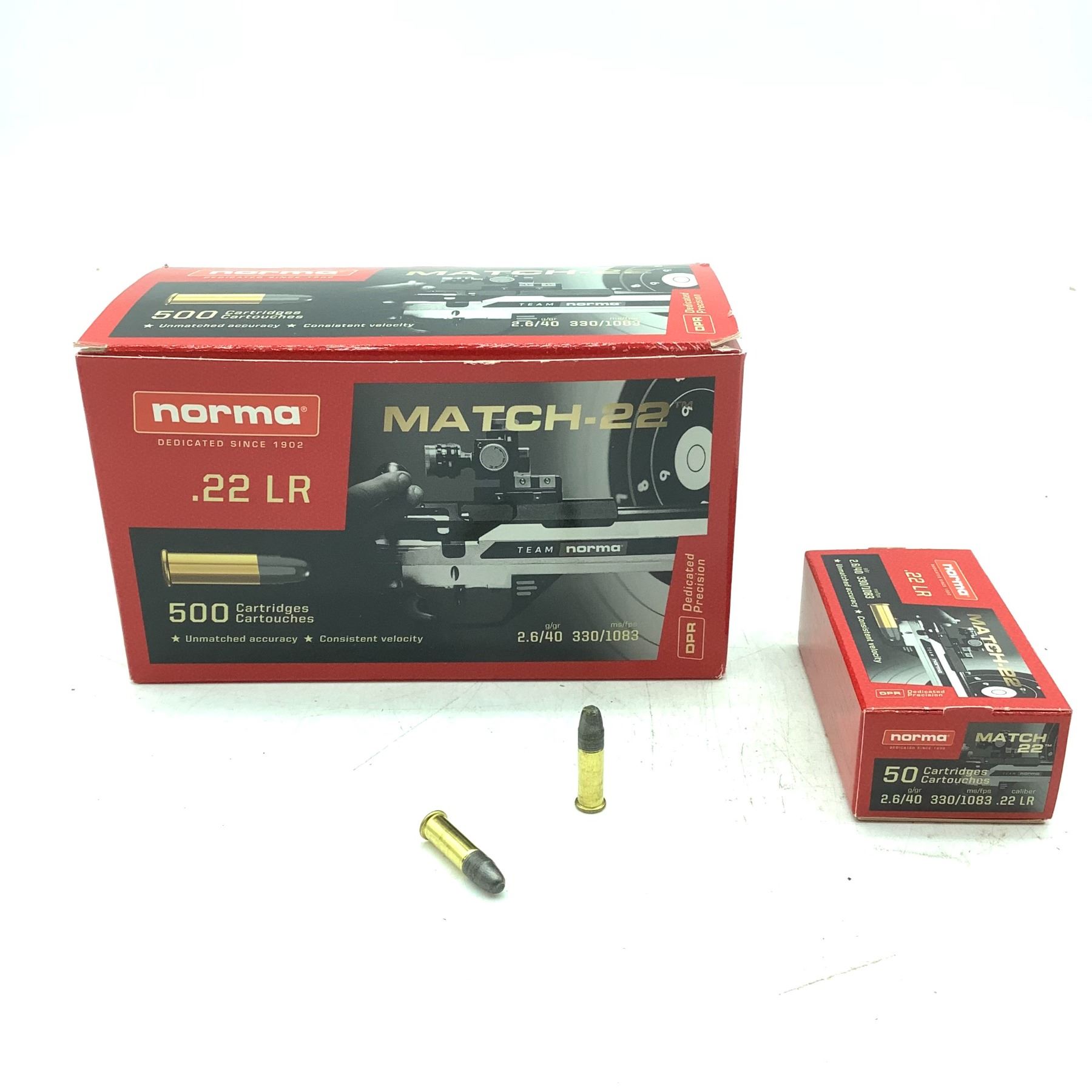 Norma Match 22 LR, 40 Grain Ammunition, 500 Rounds