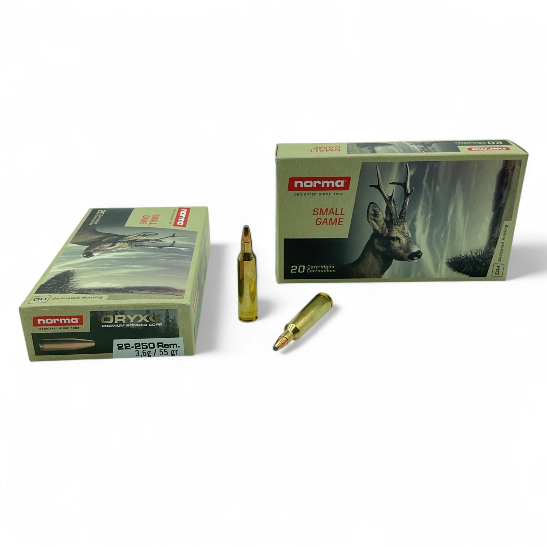 Norma Oryx Small Game 22-250 Rem, 55 Grain Ammunition, 40 Rounds