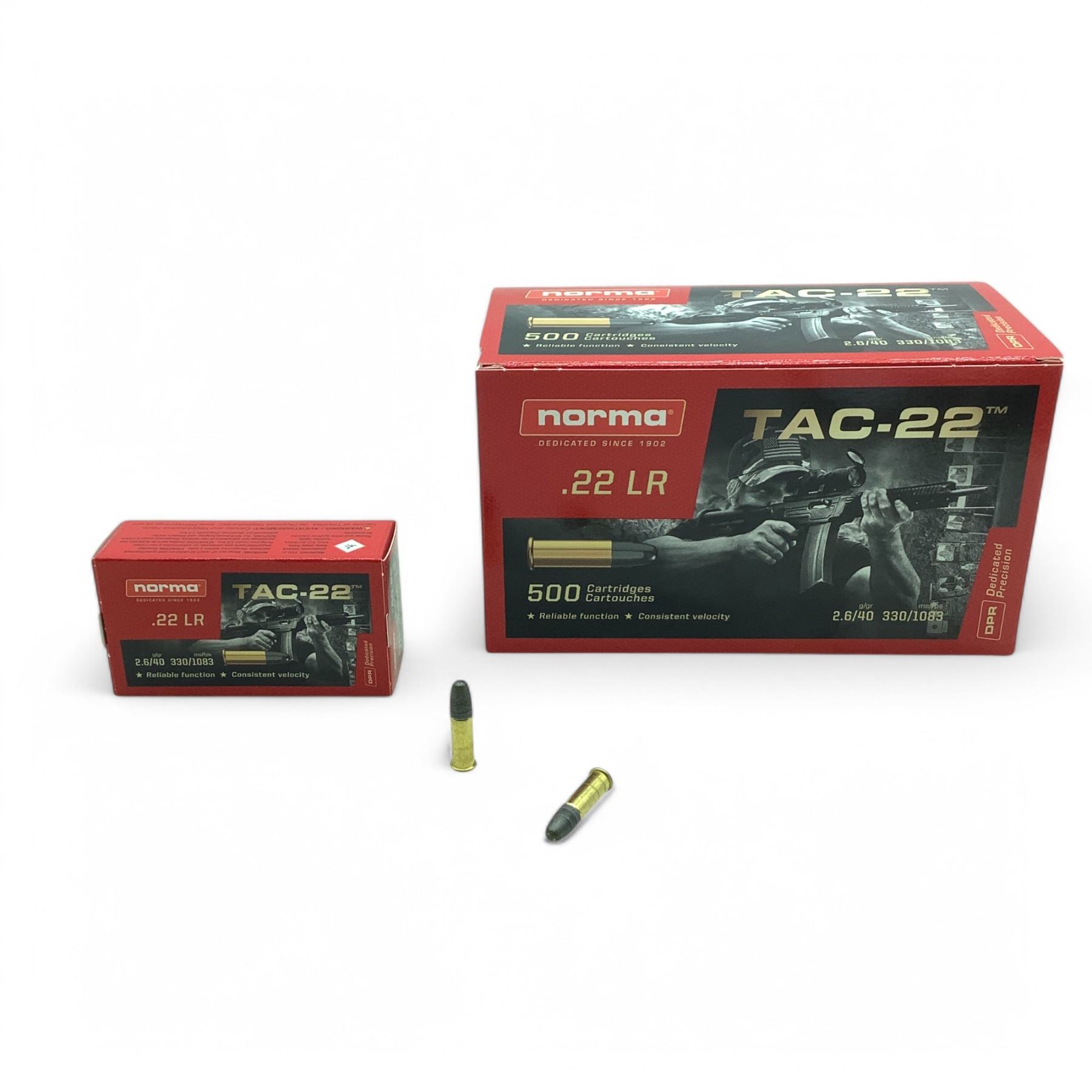 Norma Tac-22 .22 LR, 40 Grain LRN Ammunition, 500 Rounds