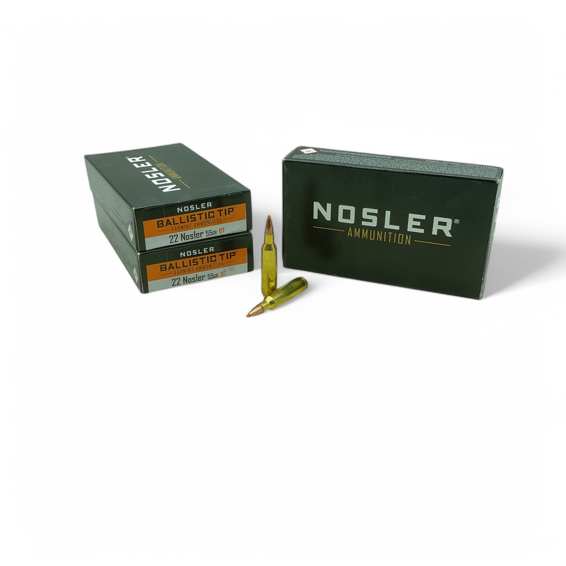 Nosler Ballistic Tip Varmint 22 Nosler, 55 Grain BT Ammunition, 60 Rounds