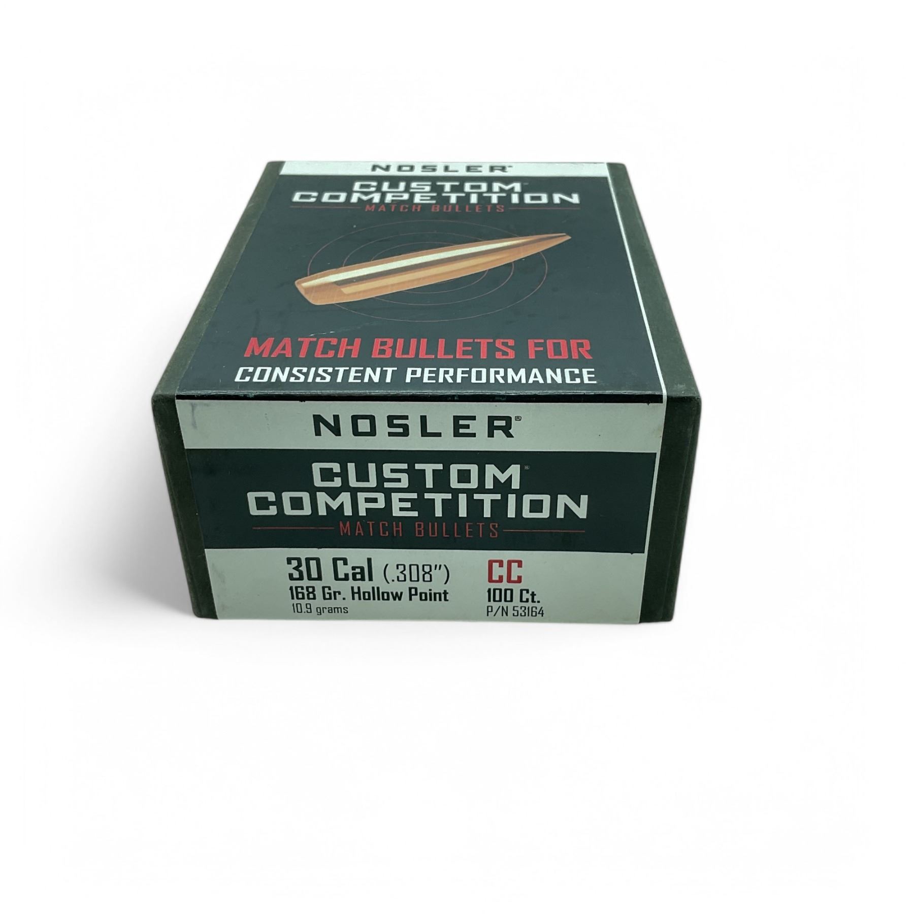Nosler Custom Competition 30 Caliber (.308"), 168 Grain Hollow Point Projectiles, 100 Qty