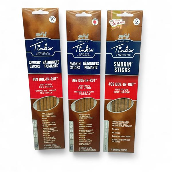 Tink's Synthetic Smokin' Sticks #69 Doe-in-Rut Estrous Doe Urine, 6 Pack X 3 Qty, New