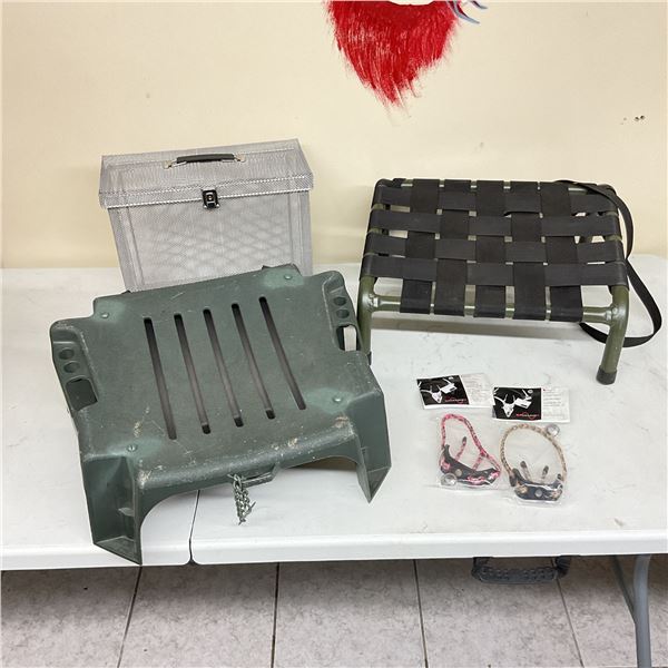 - Mesh Frog Bait Box - Stools, 1 Mesh with Strap and One Plastic Stool with Case Underneath for Calls, Etc - Paradox Bowsling X 2, New