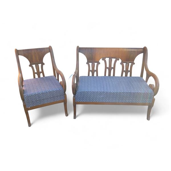 Matching Chair and Settee, Wood and Material1510 - Matching Chair and Settee, Wood and Material