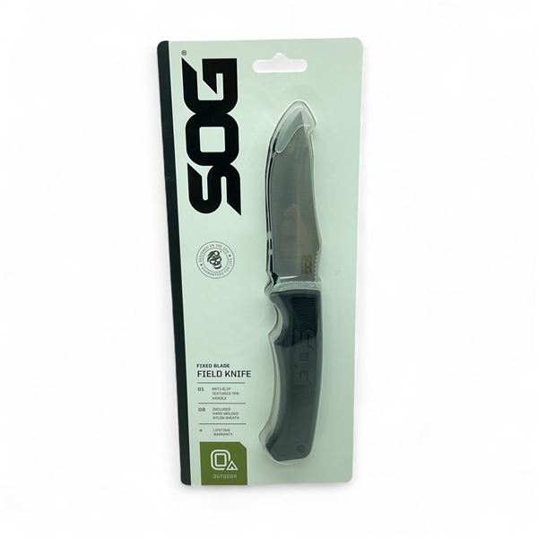 SOG Fixed Blade Field Knife, 4.1" Blade with Belt Clip Sheath, New