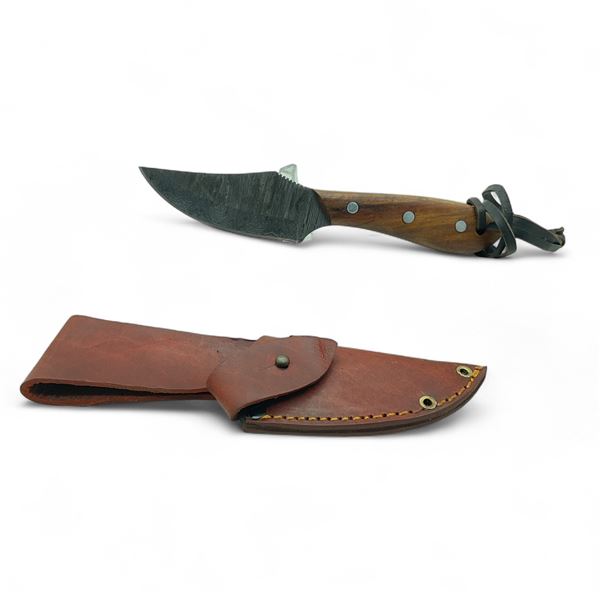 Fixed 8" Damascus Blade Knife with Leather Sheath