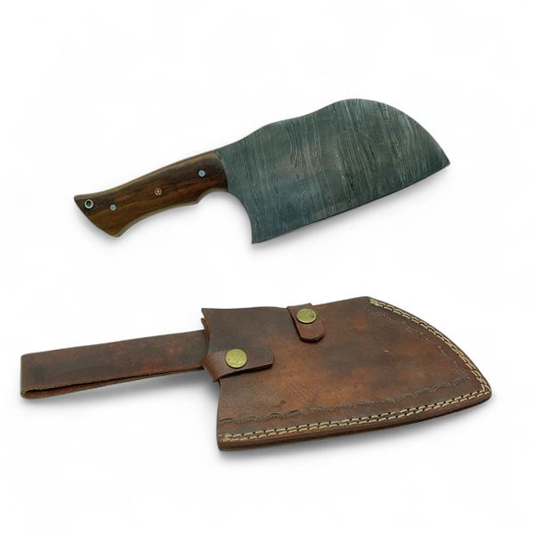 Fixed 7" Damascus Cleaver with Leather Sheath