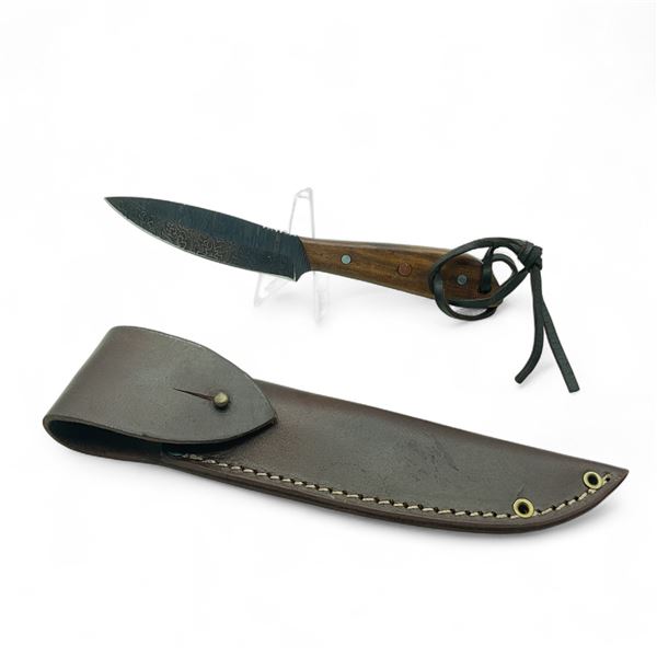 Fixed 4" Damascus Blade Knife with Leather Sheath