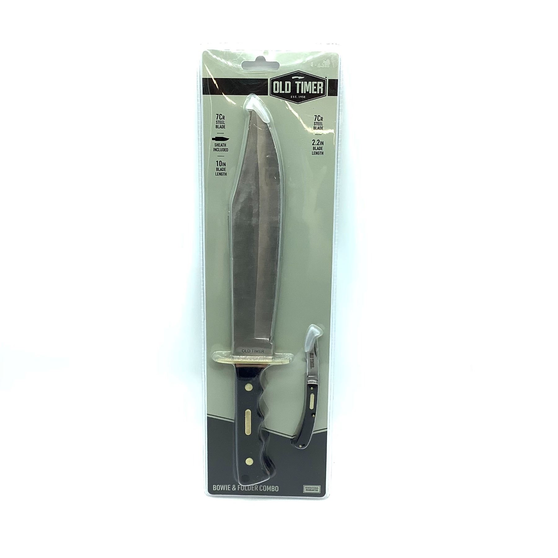 Old Timer 10" Fixed Blade Bowie Knife with Sheath and 2.2" Blade Folder, New