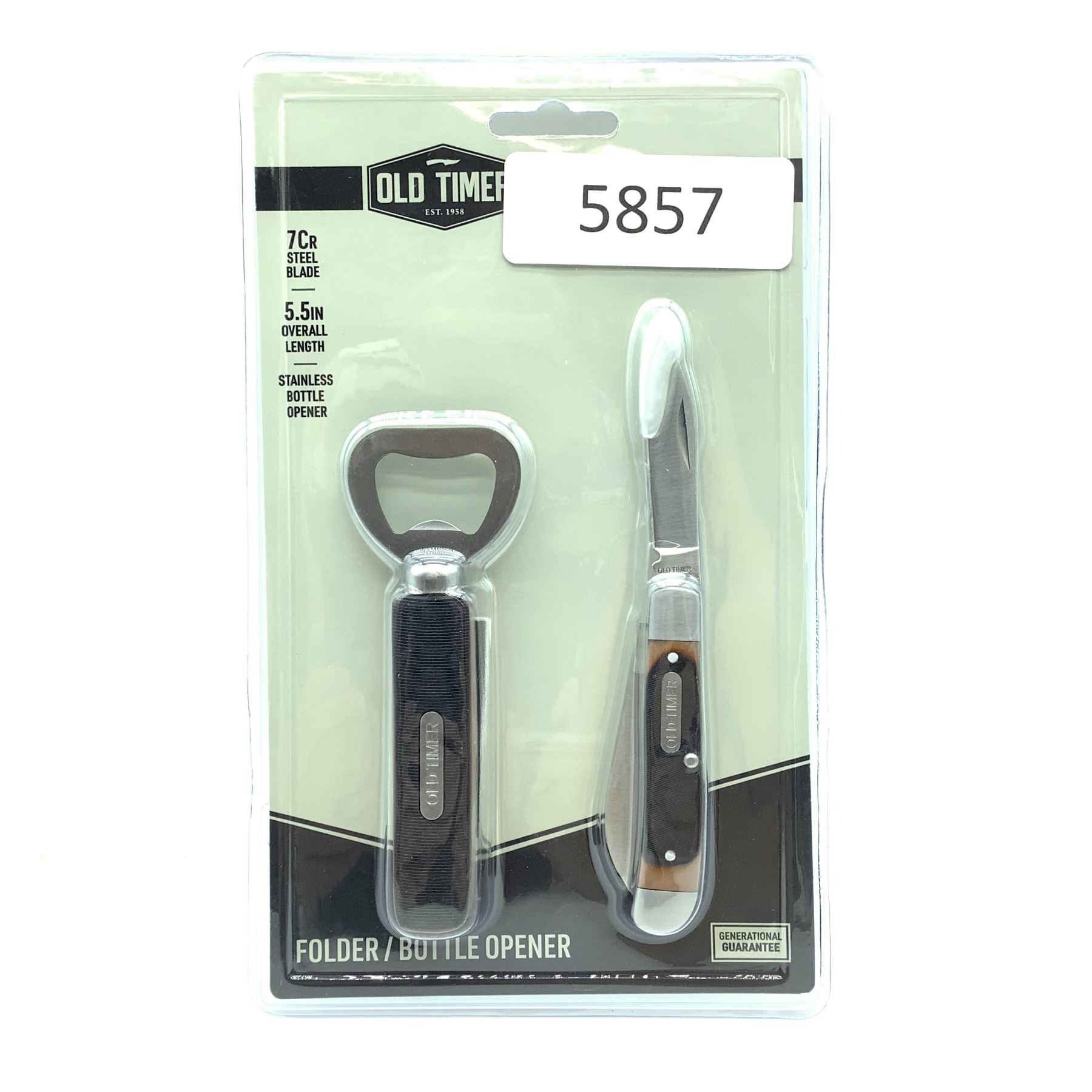 Old Timer Folding 2.5" Knife/ Bottle Opener Set, New
