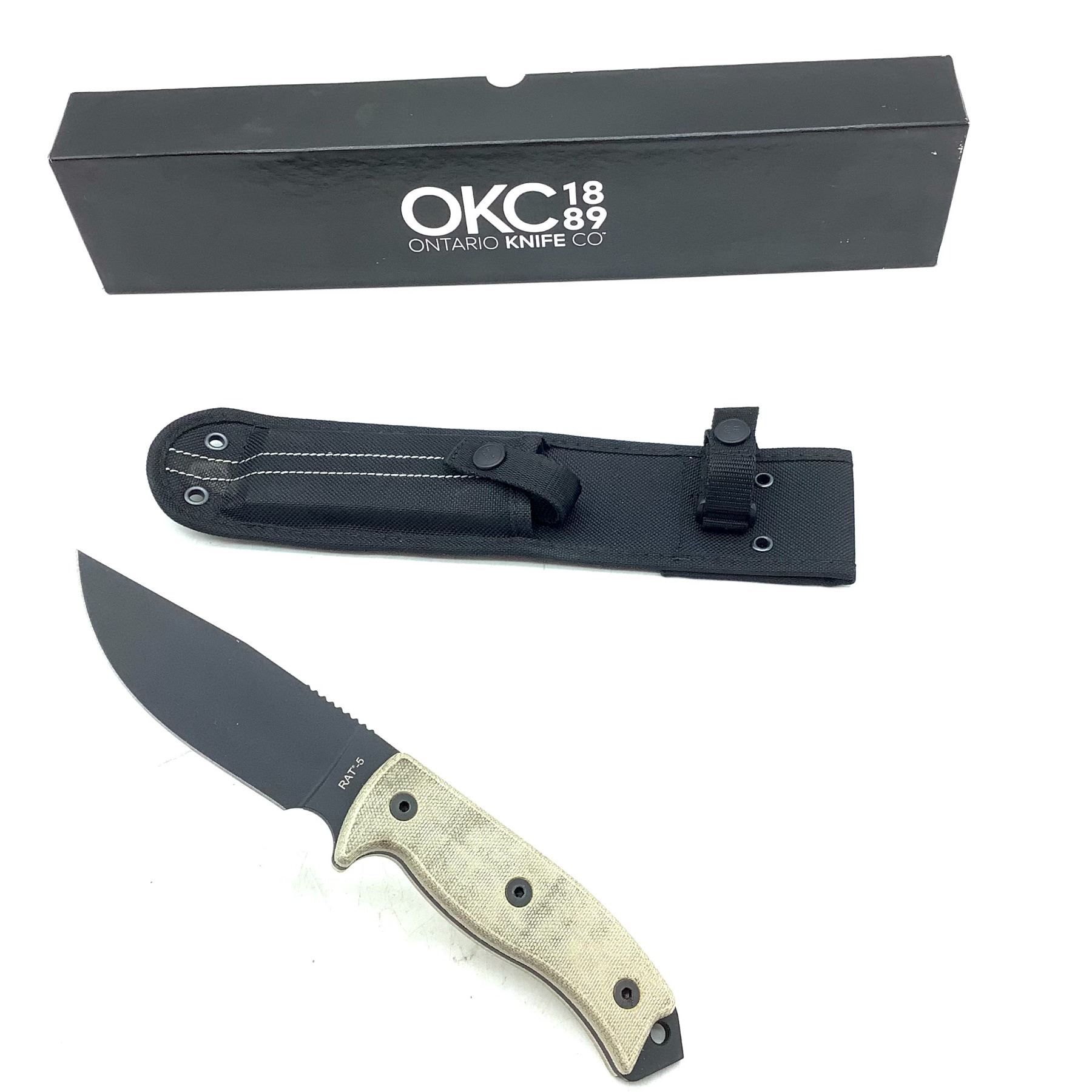 Ontario Knife Co RAT 5 Fixed 4 1/2" Blade Knife with Belt Sheath, New