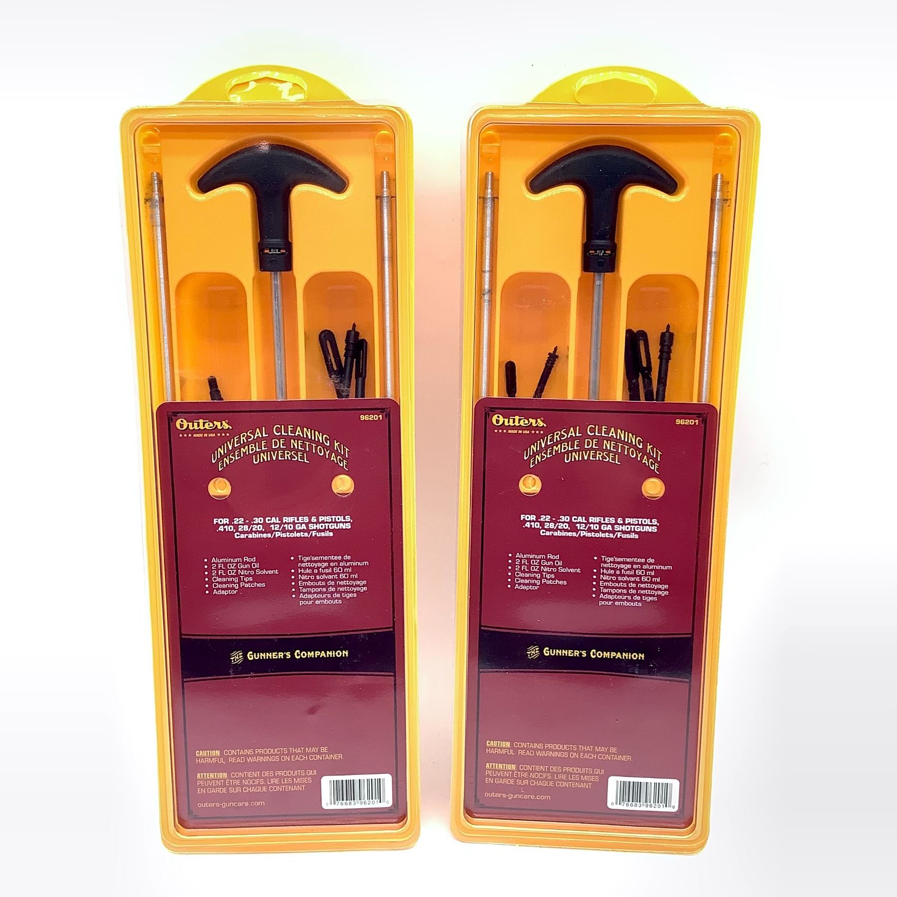 Outer's Universal Cleaning Kit for 22 -30 Cal Rifles and Pistols and All 410, 28/20 Ga, 12/10 Ga Shotguns X 2, New