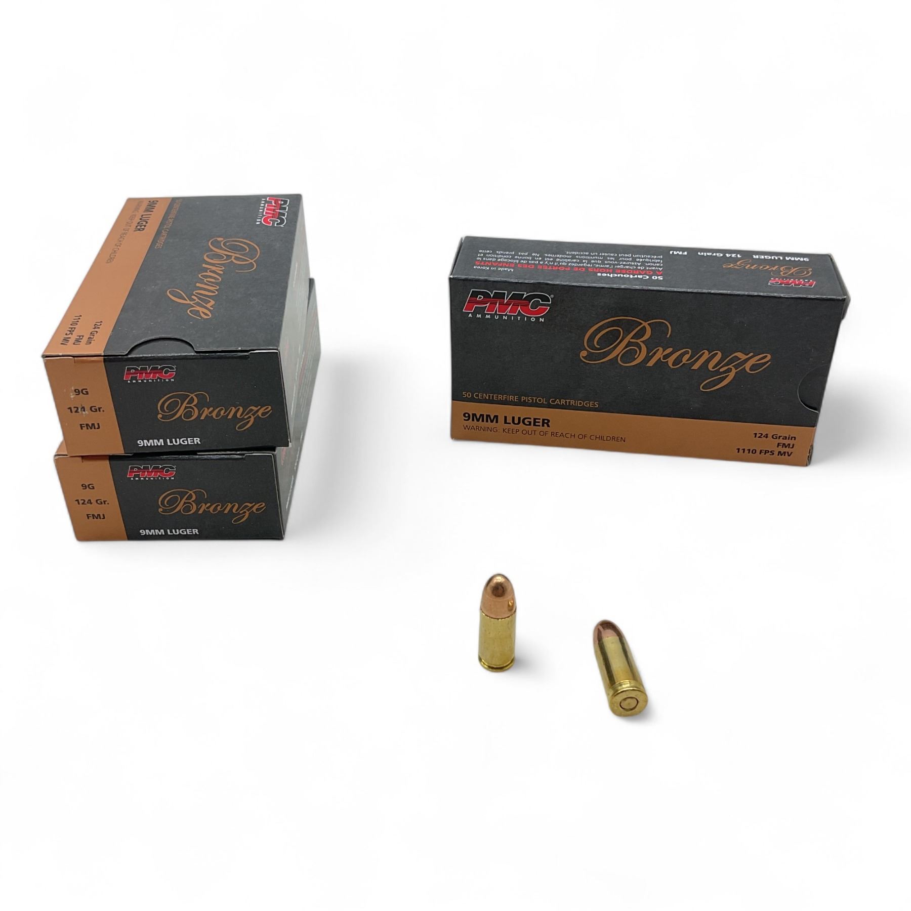 PMC Bronze 9mm Luger 124 Grain FMJ Ammunition, 150 Rounds
