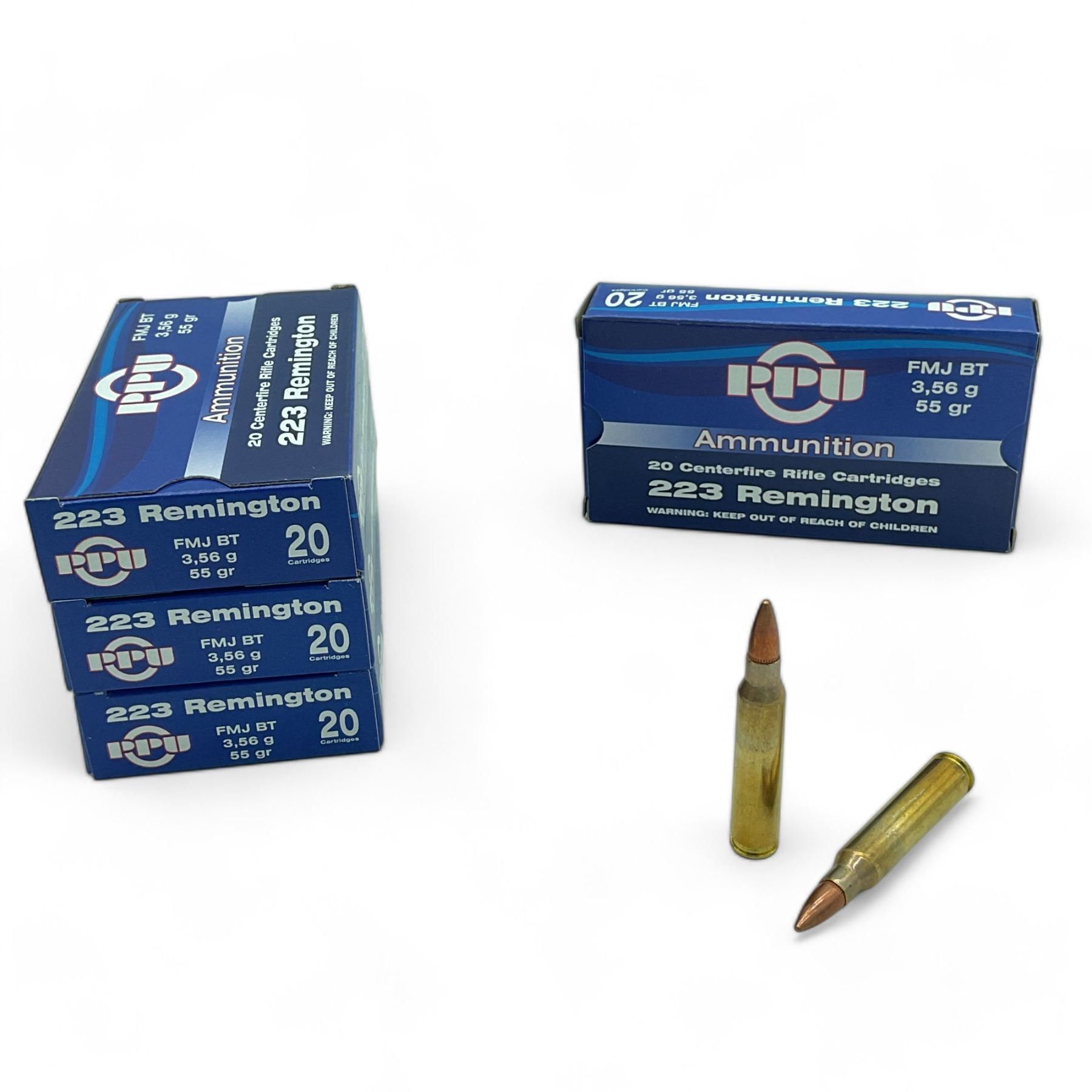PPU 223 Rem 55 Grain FMJ BT Ammunition, 80 Rounds