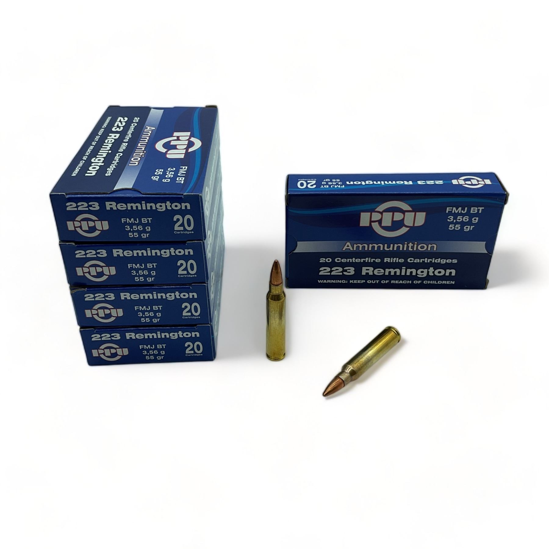 PPU 223 Remington 55 Grain FMJ BT Ammunition, 100 Rounds