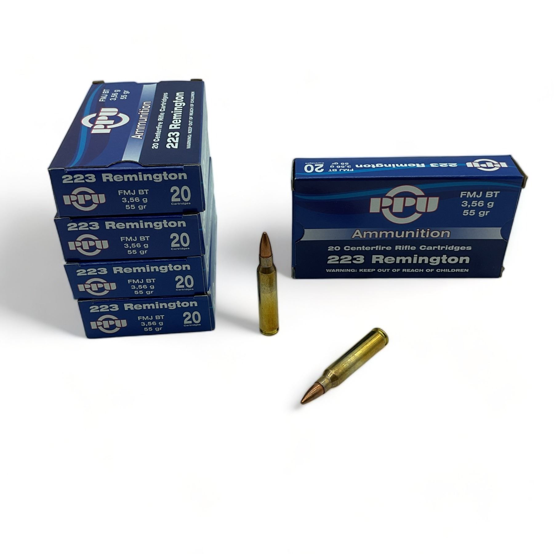 PPU 223 Remington 55 Grain FMJ BT Ammunition, 100 Rounds