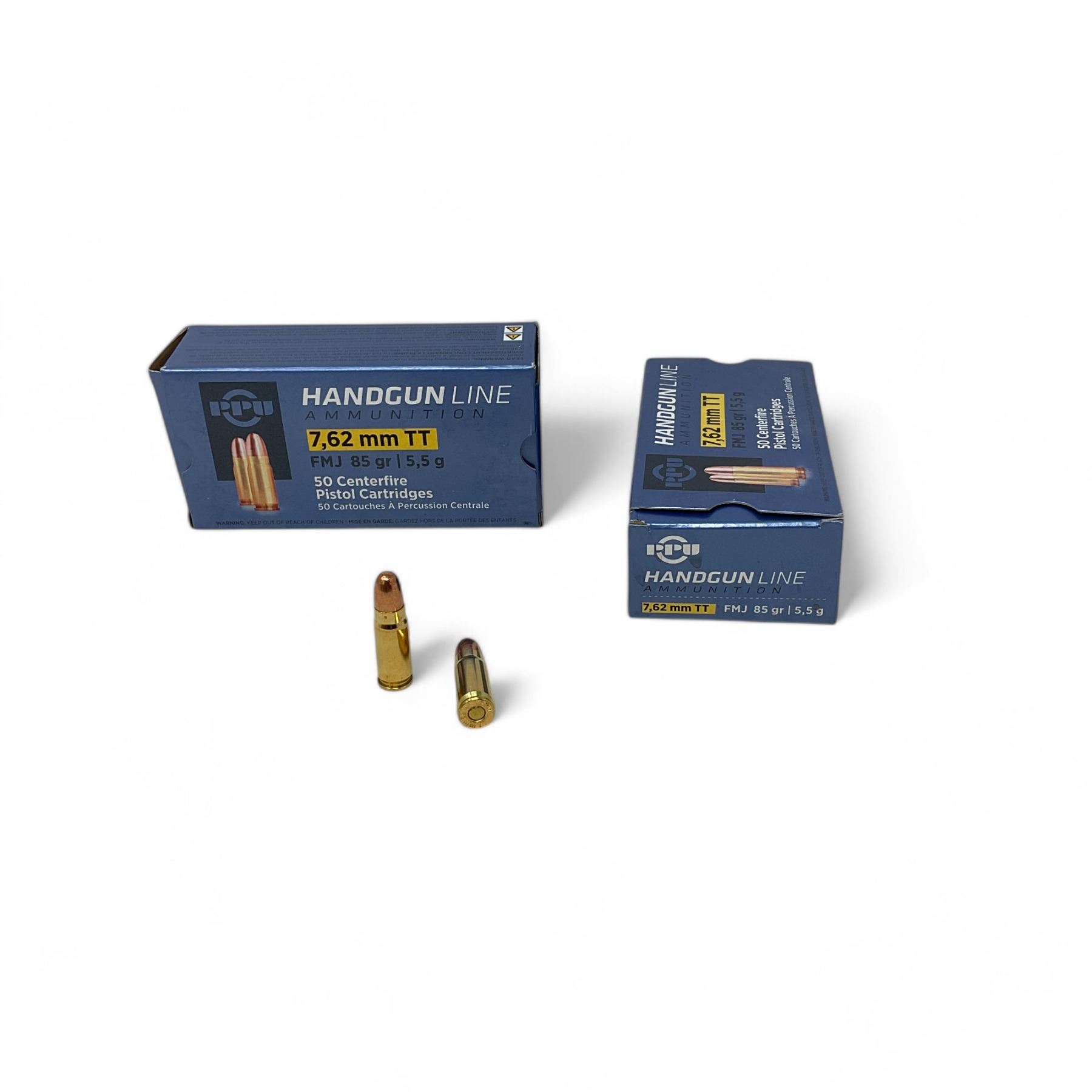 PPU Handgun Line 7.62 TT 85 Grain FMJ Ammunition, 100 Rounds