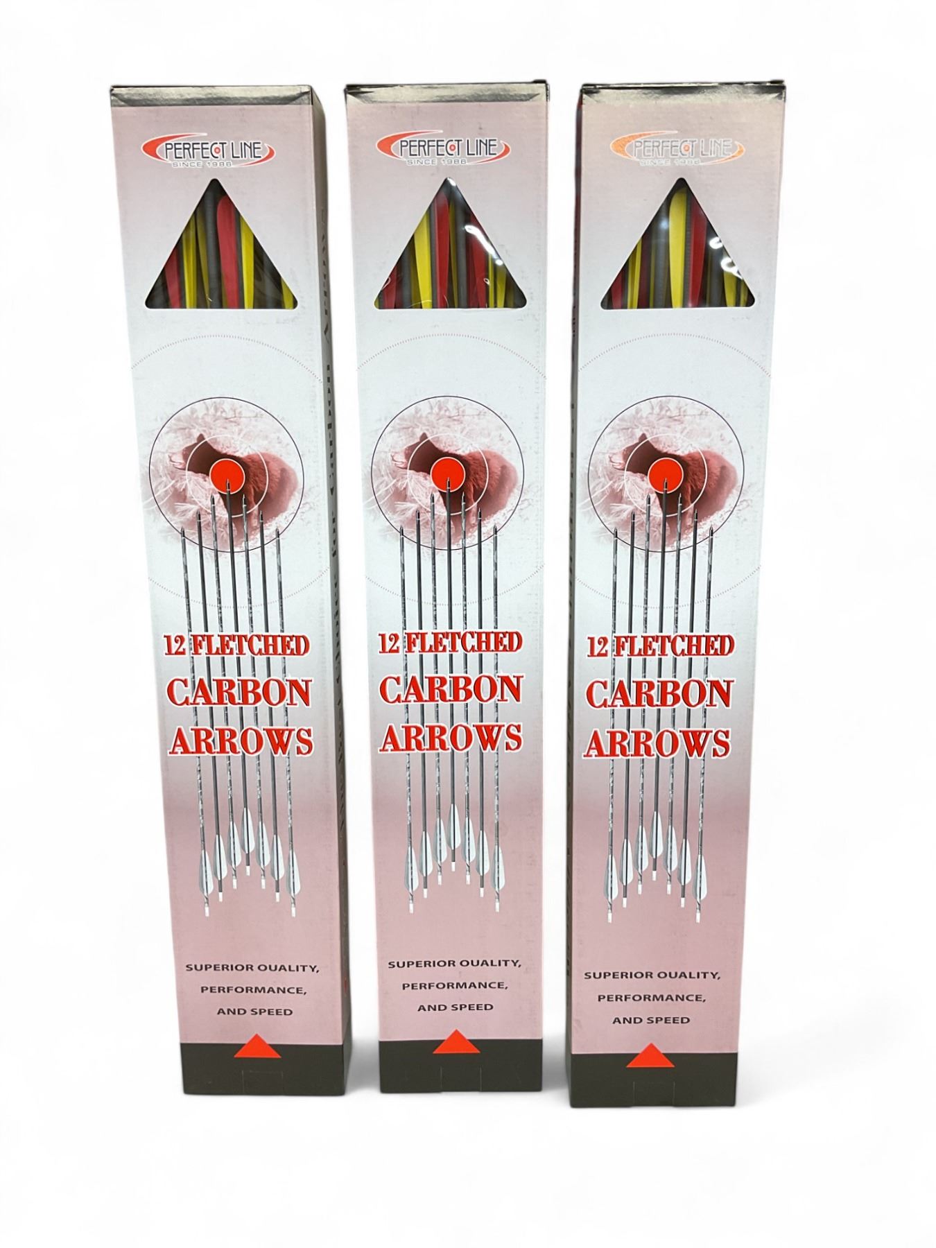 Perfect Line Fletched Carbon Arrows 12 Pack X 3 Qty