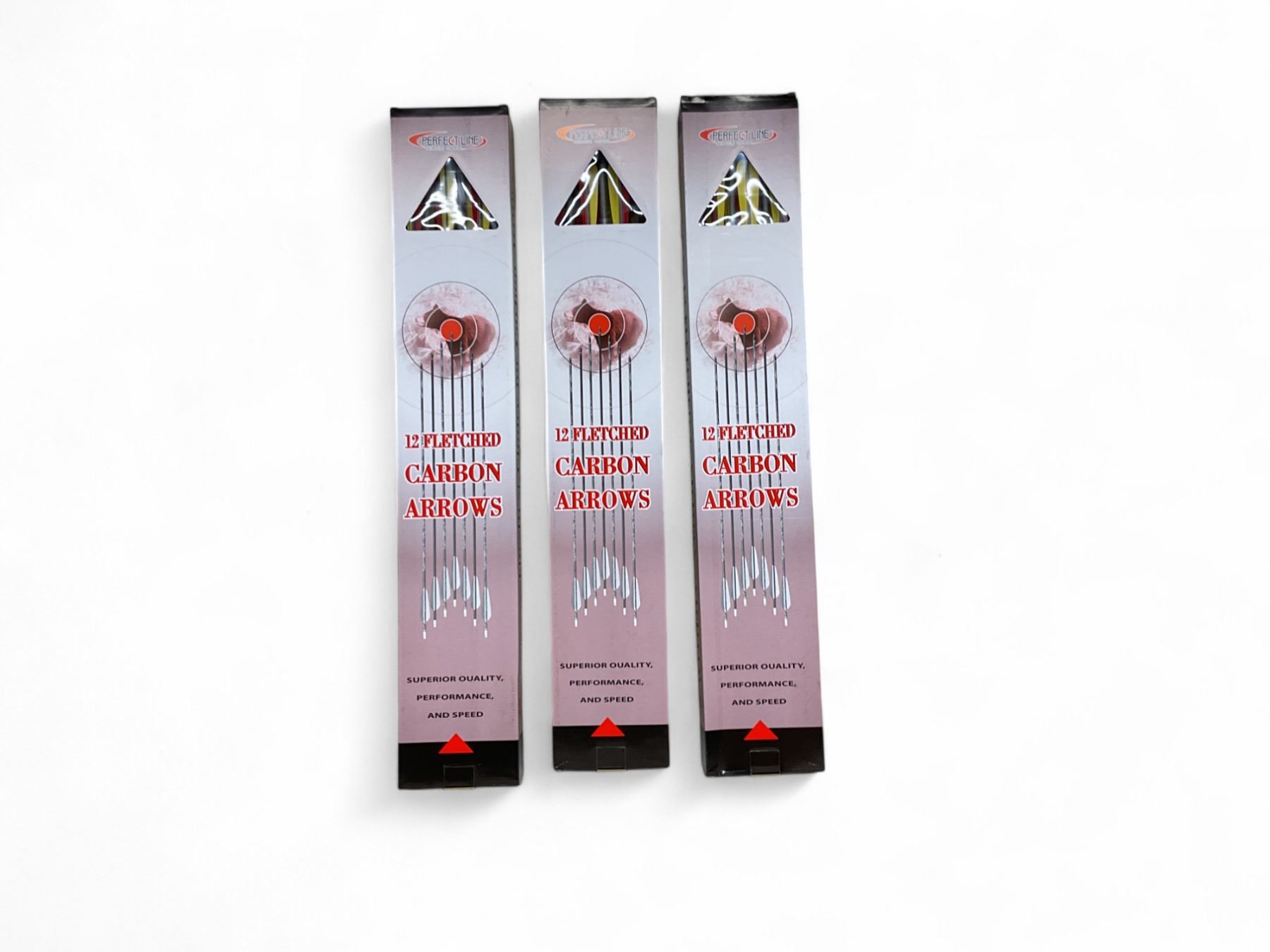Perfect Line Fletched Carbon Arrows, 12 Pack X 3 Qty