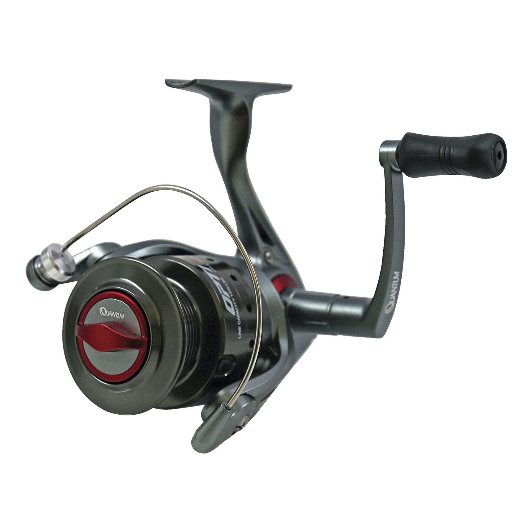 The Quantum Optix Spinning Reel offers exceptional performance with a double anodized aluminum spool and corrosion-resistant stainless steel bail wire for durability. It features four stainless steel bearings and a continuous anti-reverse system, providing smooth operation and solid hook sets.