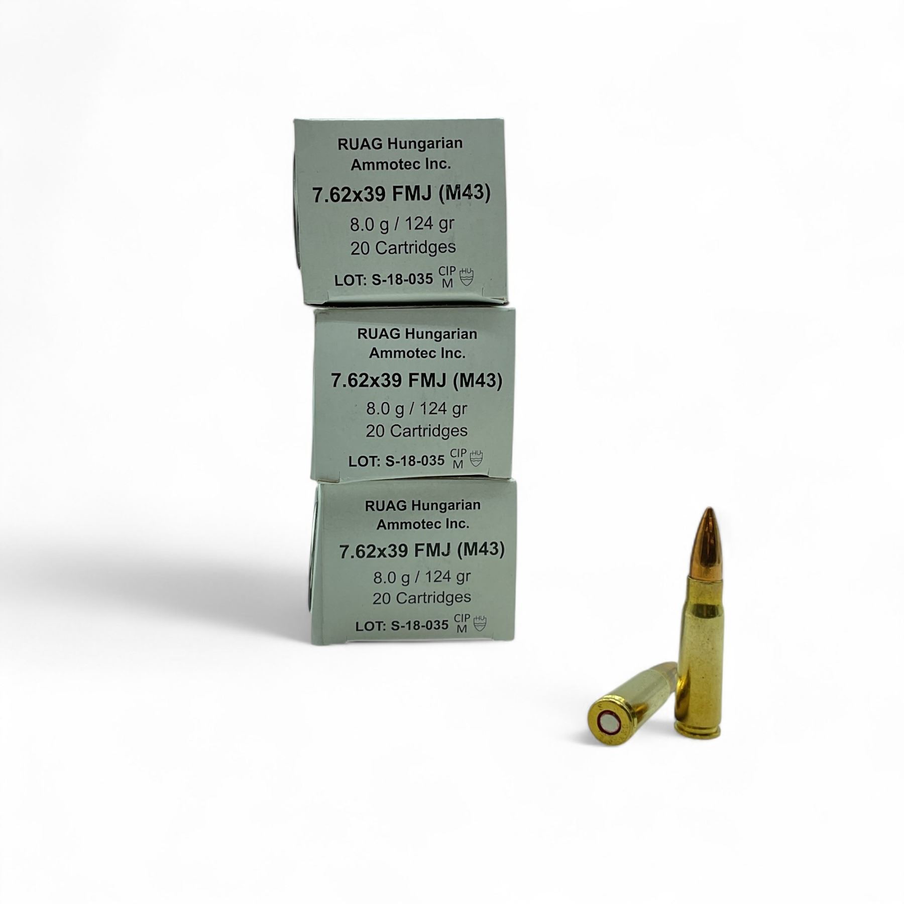 RUAG Hungarian Ammotec 7.62x39, 124 Grain FMJ Ammunition, 60 Rounds