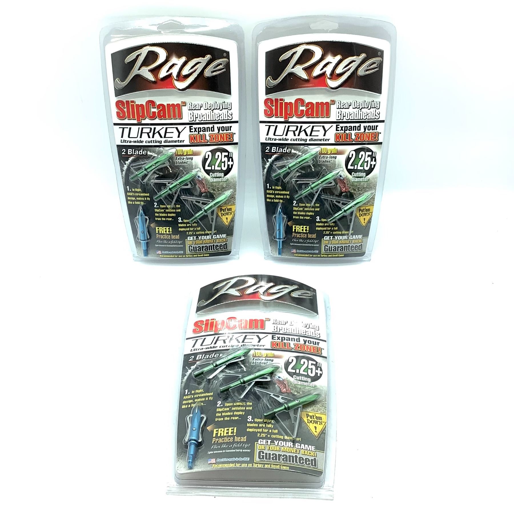 Rage Turkey SlipCam Rear Deploying Broadheads, 100 gr, 3 Pack, New x 3