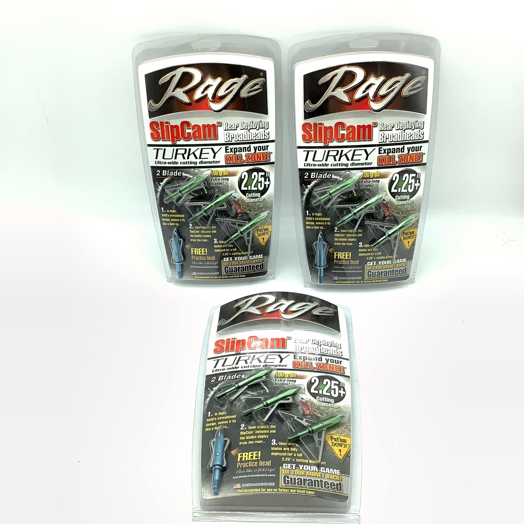 Rage Turkey SlipCam Rear Deploying Broadheads, 100 gr, 3 Pack, New x 3