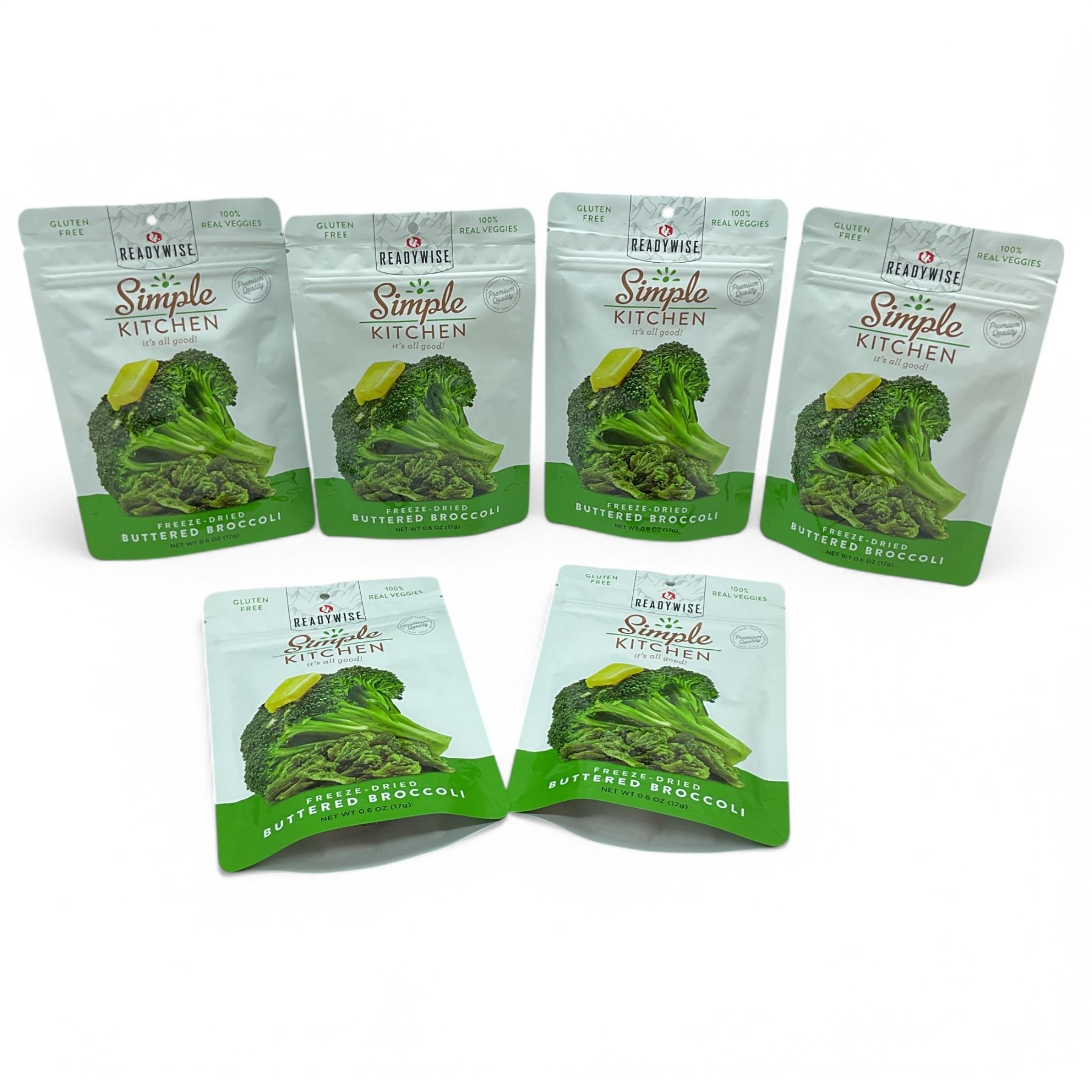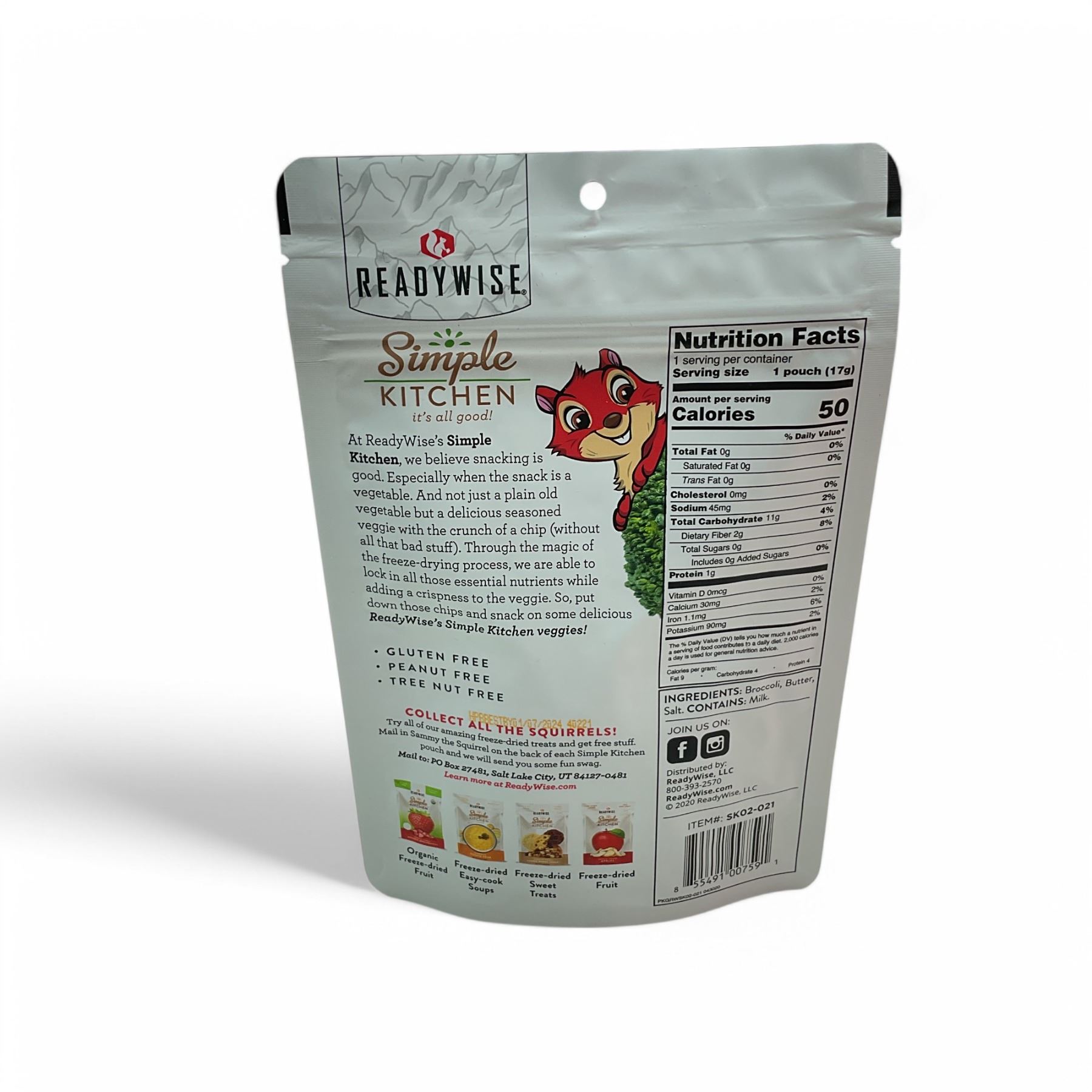 Ready Wise Simple Kitchen Freeze Dried Buttered Broccoli, 0.6 oz Bag X 6 Qty