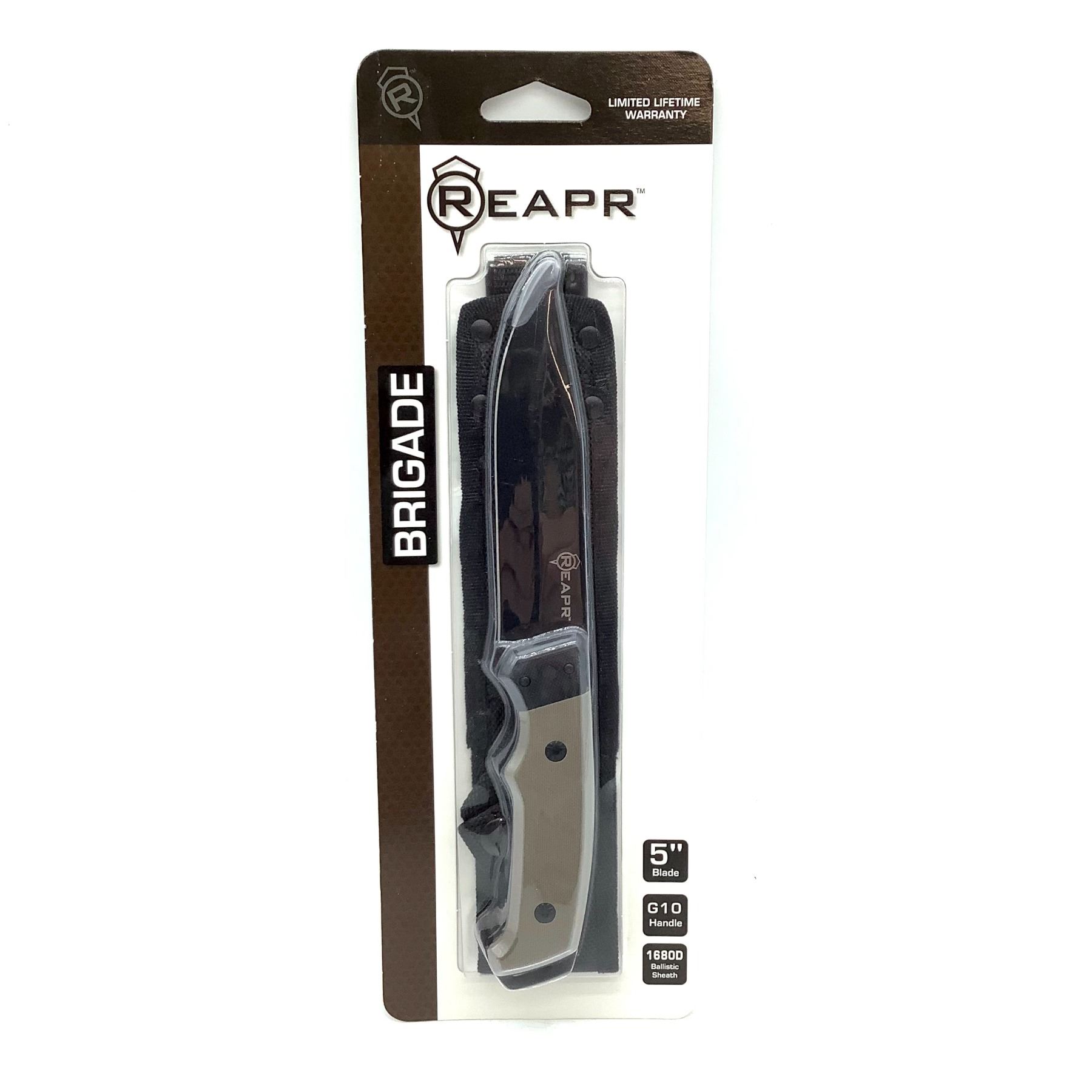 Reapr Brigade Fixed 5" Drop Point Blade Knife and Belt Sheath, New