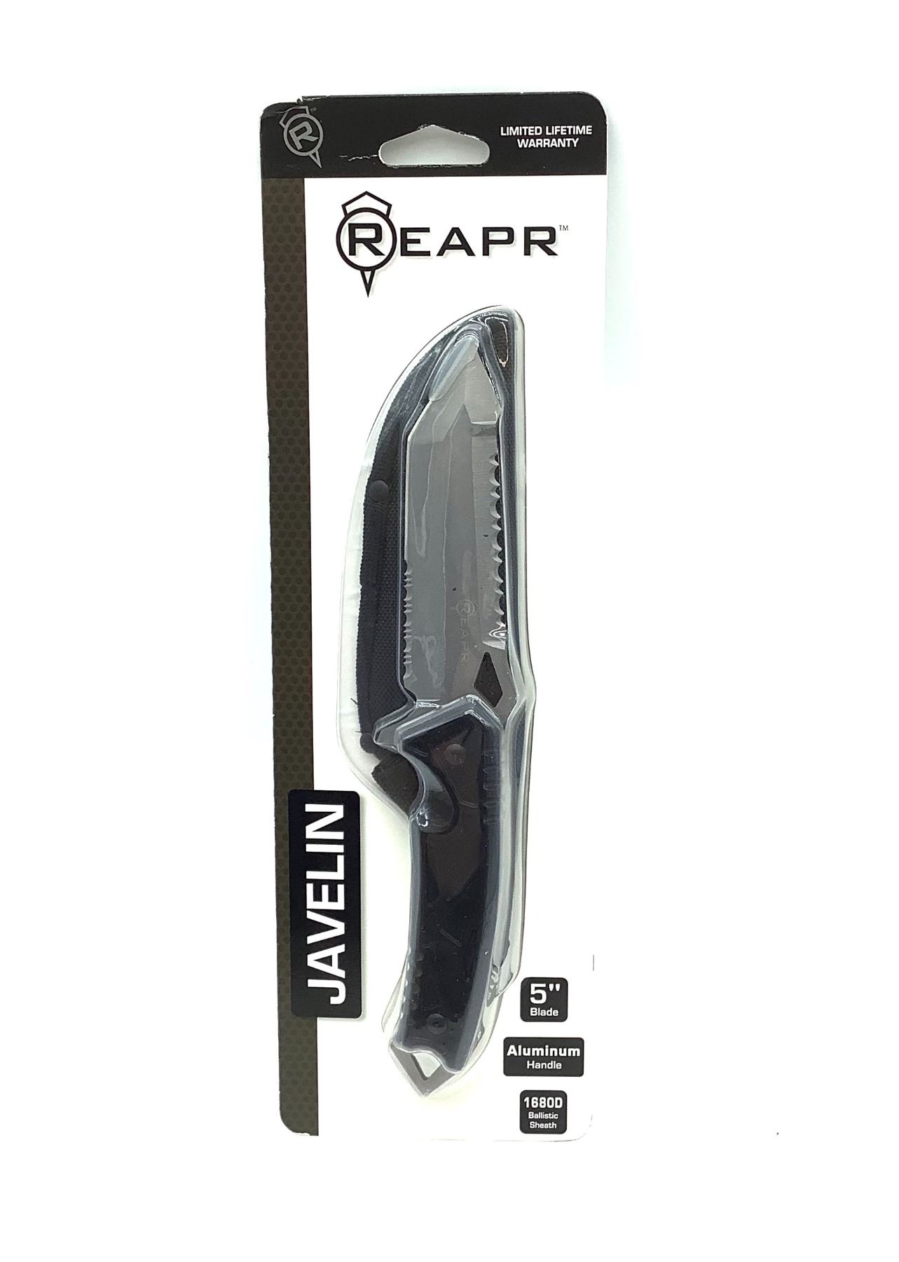 Reapr Javelin Fixed 5" Serrated Tanto Blade Knife with Sheath, New