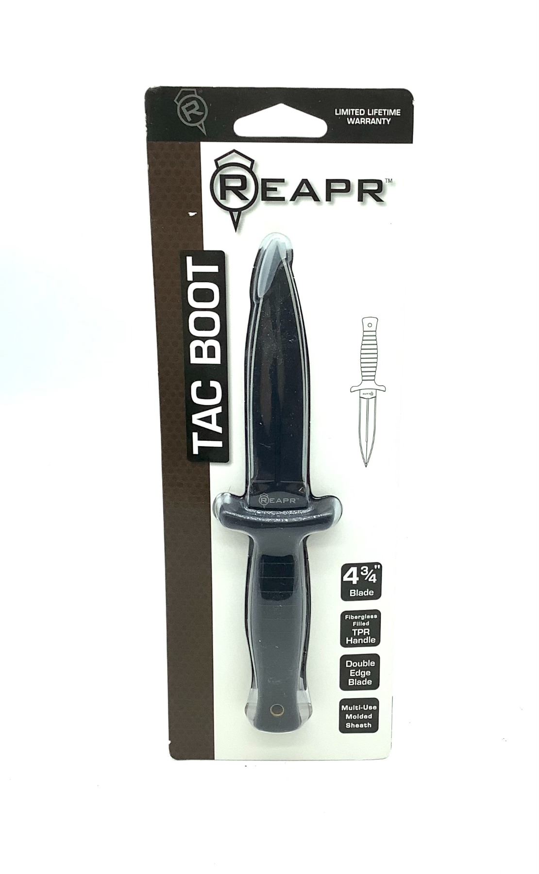 Reapr Tac Boot 4 3/4" Fixed Double Edged Blade with Ballistic Sheath, New