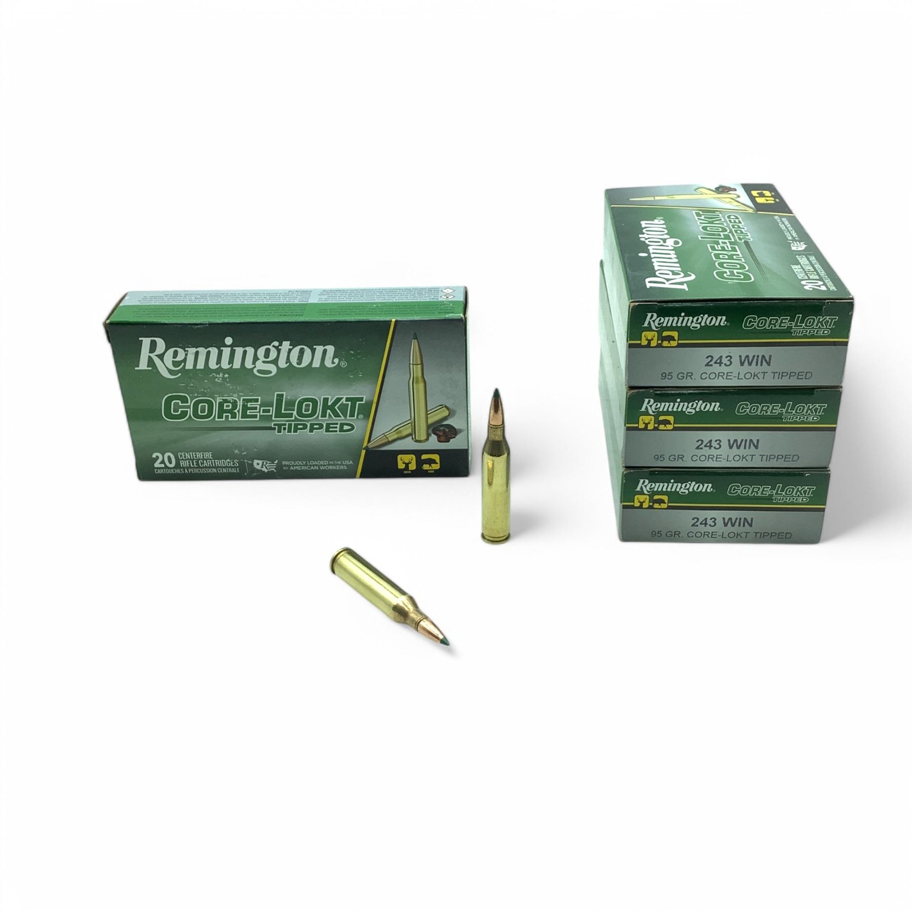 Remington 243 Win, 95 Grain Core-Lokt Tipped Ammunition, 80 Rounds