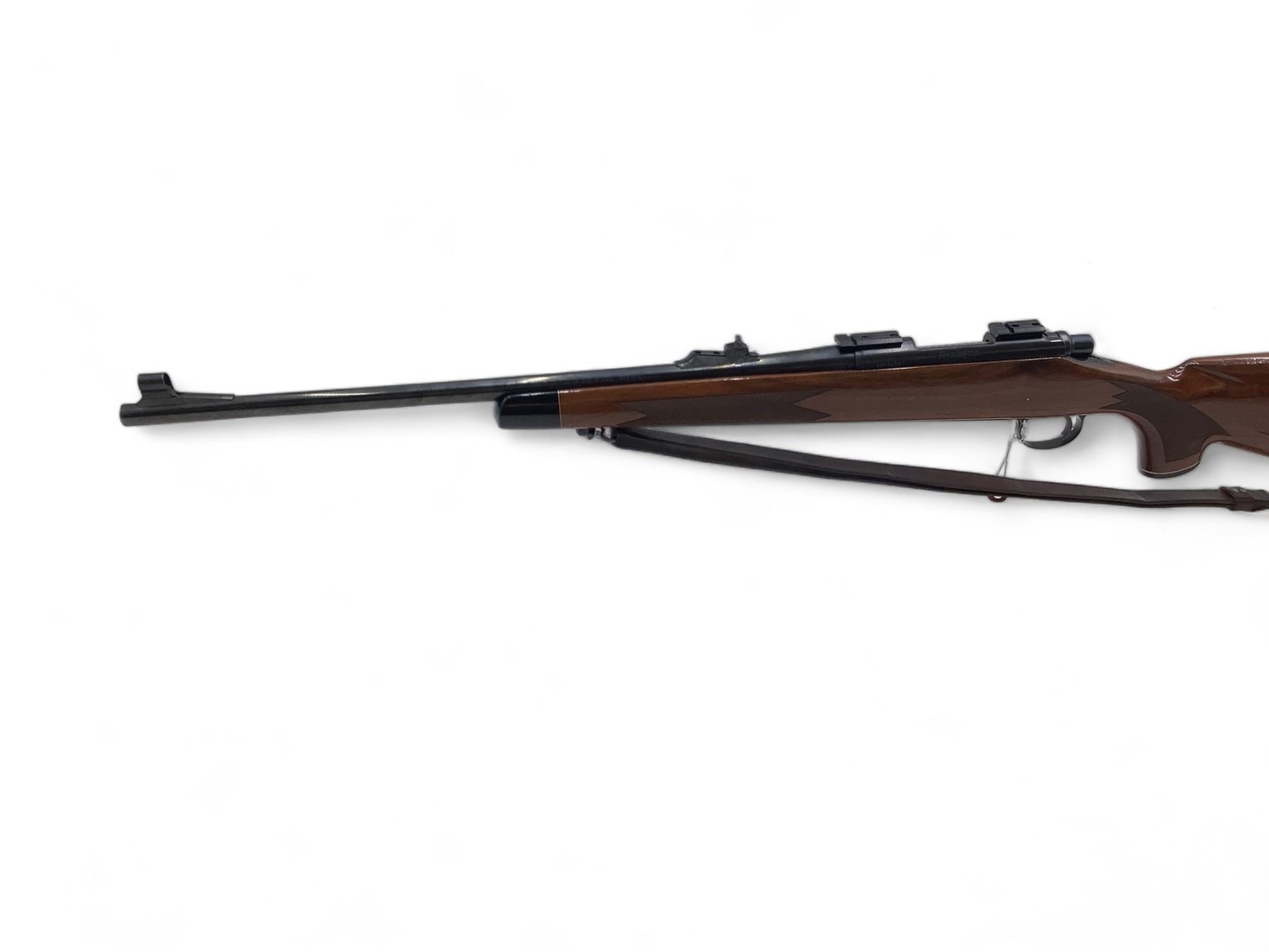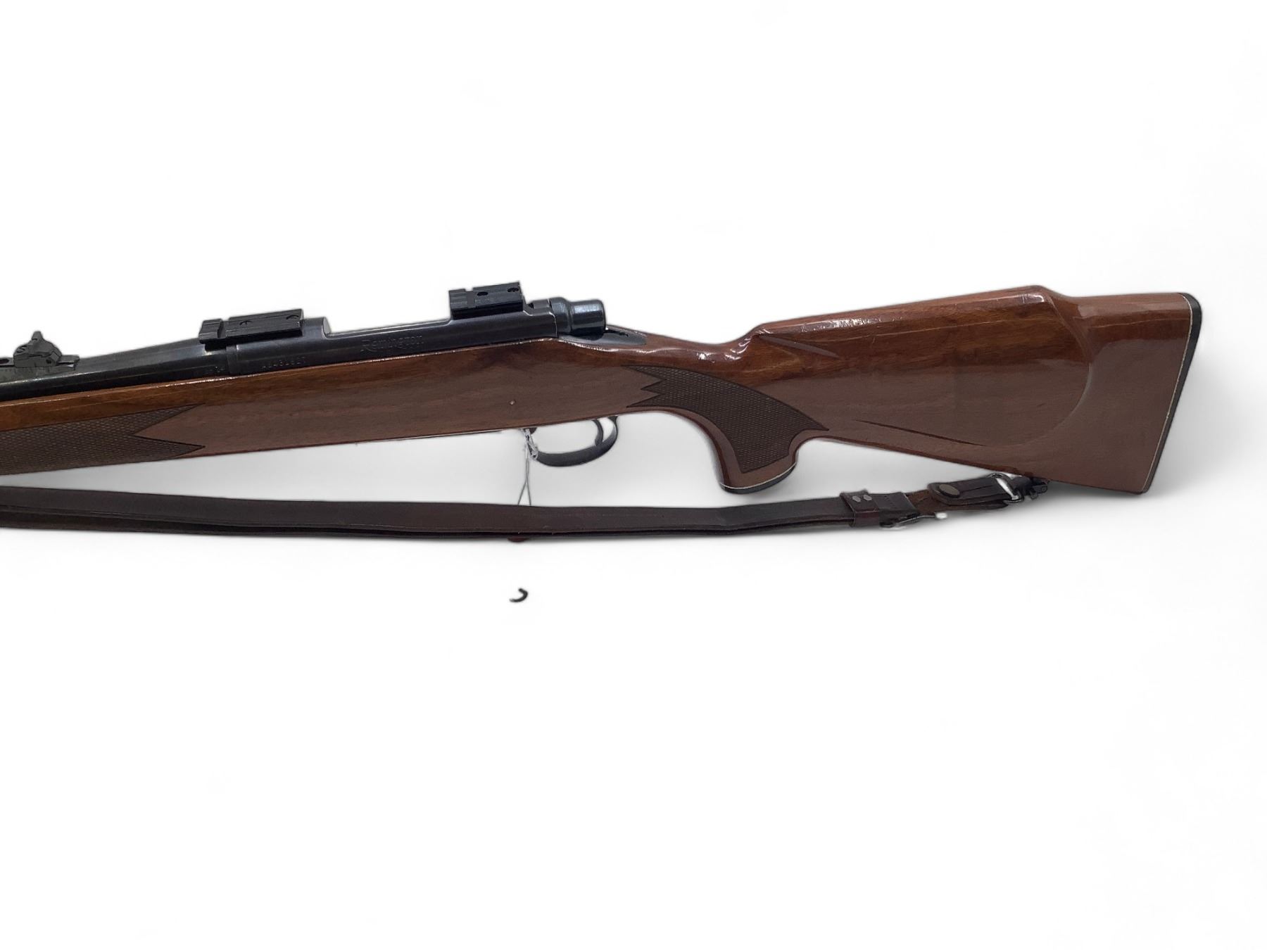 Remington 700 Bolt Action Rifle 308 Win 22" Barrel Wood Stock. Internal magazine with hinged base plate. Hooded front sight, adjustable rear sight. Receiver drilled and tapped with bases installed. Includes leather sling. This is a non-restricted firearm.