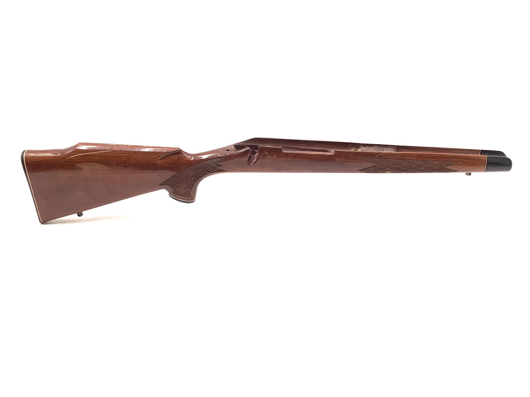 Remington 700LA Wood Stock. Plastic butt plate, includes sling studs.