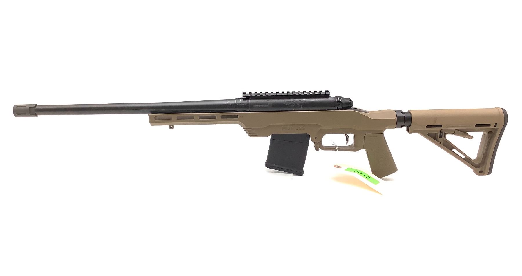 Remington 783 Bolt Action Rifle 223 Rem 16.5" Heavy Barrel MDT LSS FDE Chassis. Magpul grip, adjustable stock and removable Magazine. Receiver drilled and tapped with rail installed. Includes brake and oversize bolt knob. Some marks on finish of gun. This is a non-restricted firearm.