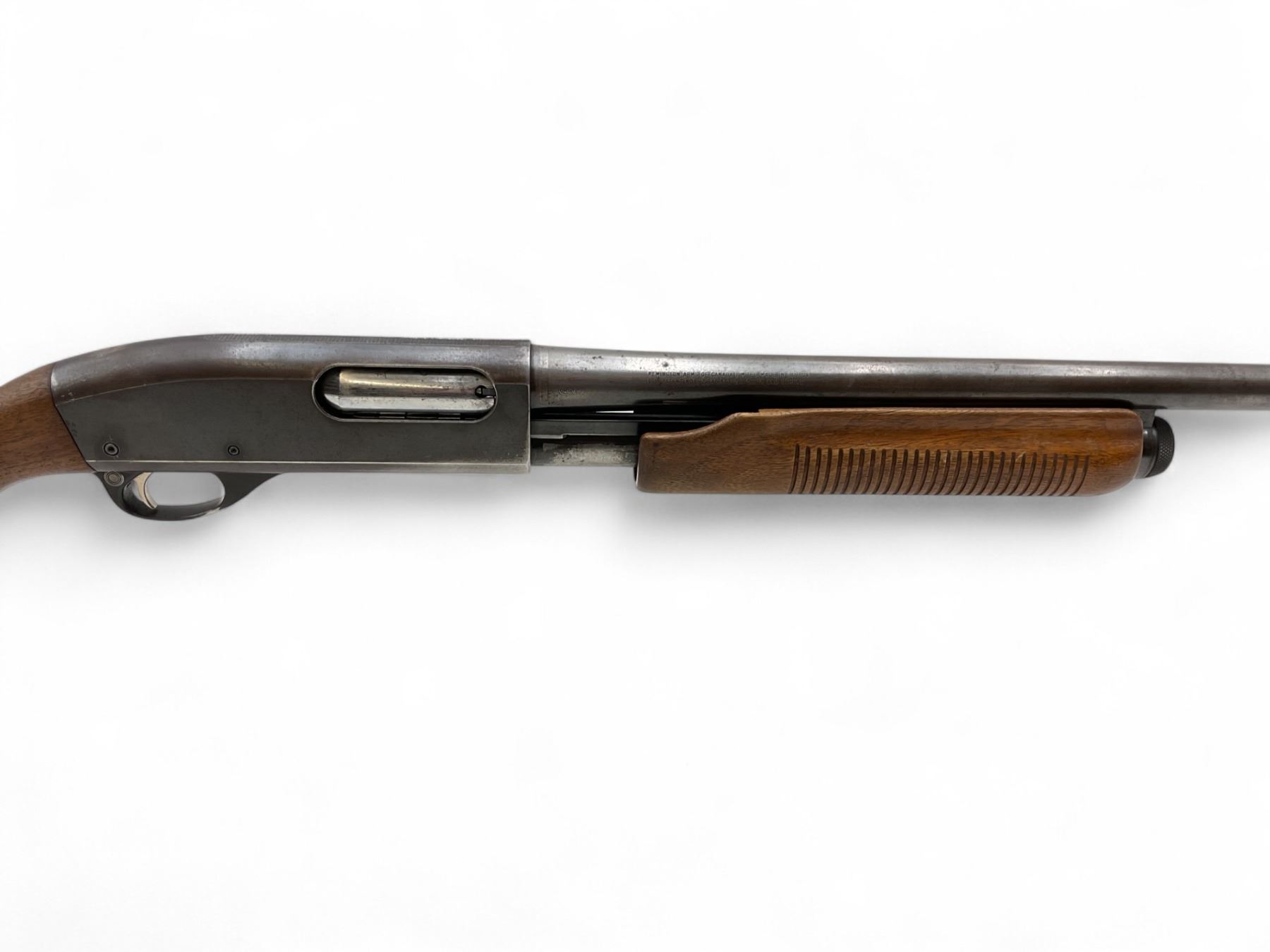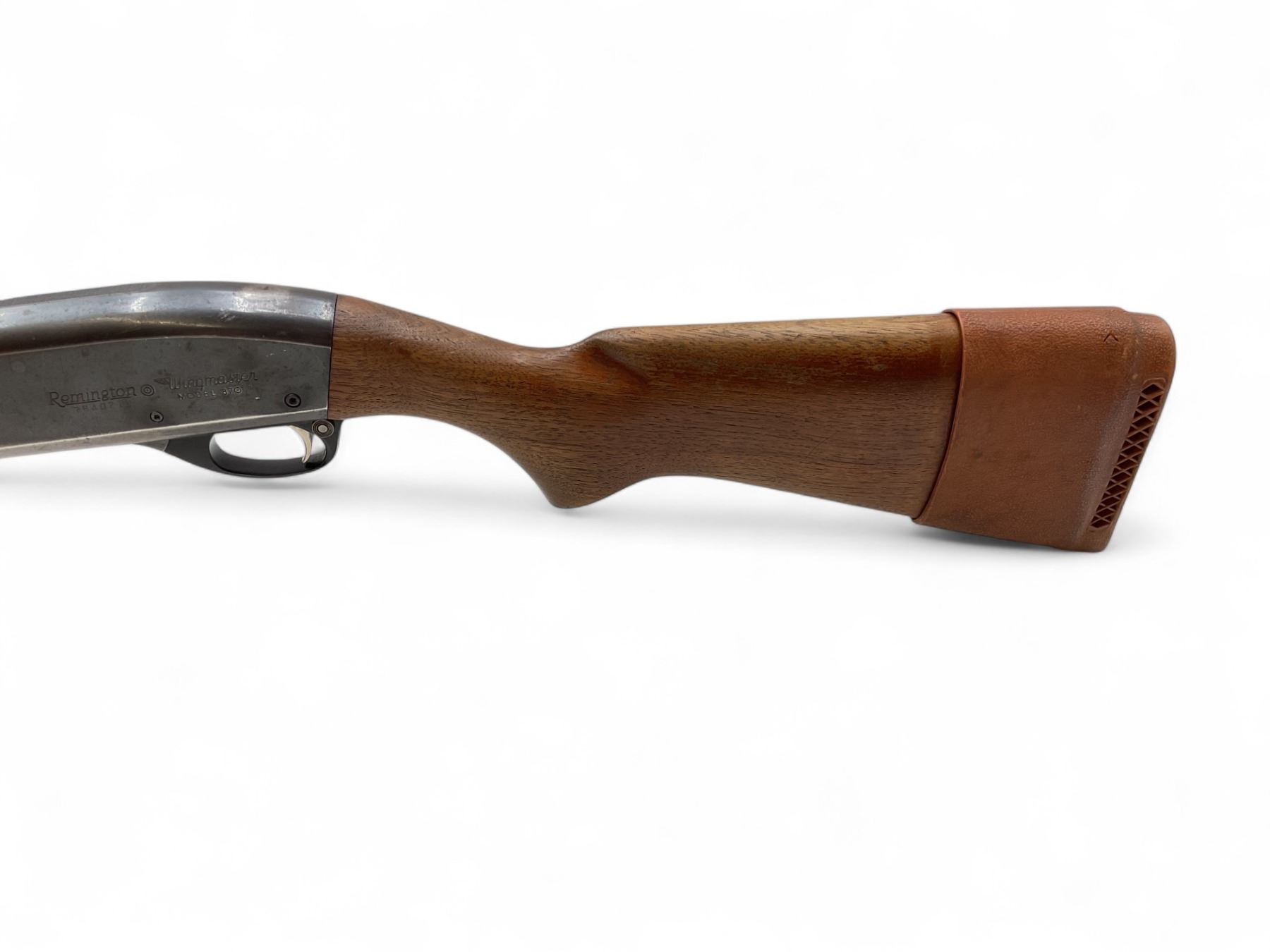Remington 870 Wingmaster Pump Action Shotgun 12Ga 2.75" Chamber 30" Barrel Wood Stock. Bead sight, fixed choke. Rear stock has slip on recoil pad. This is a non-restricted firerarm.