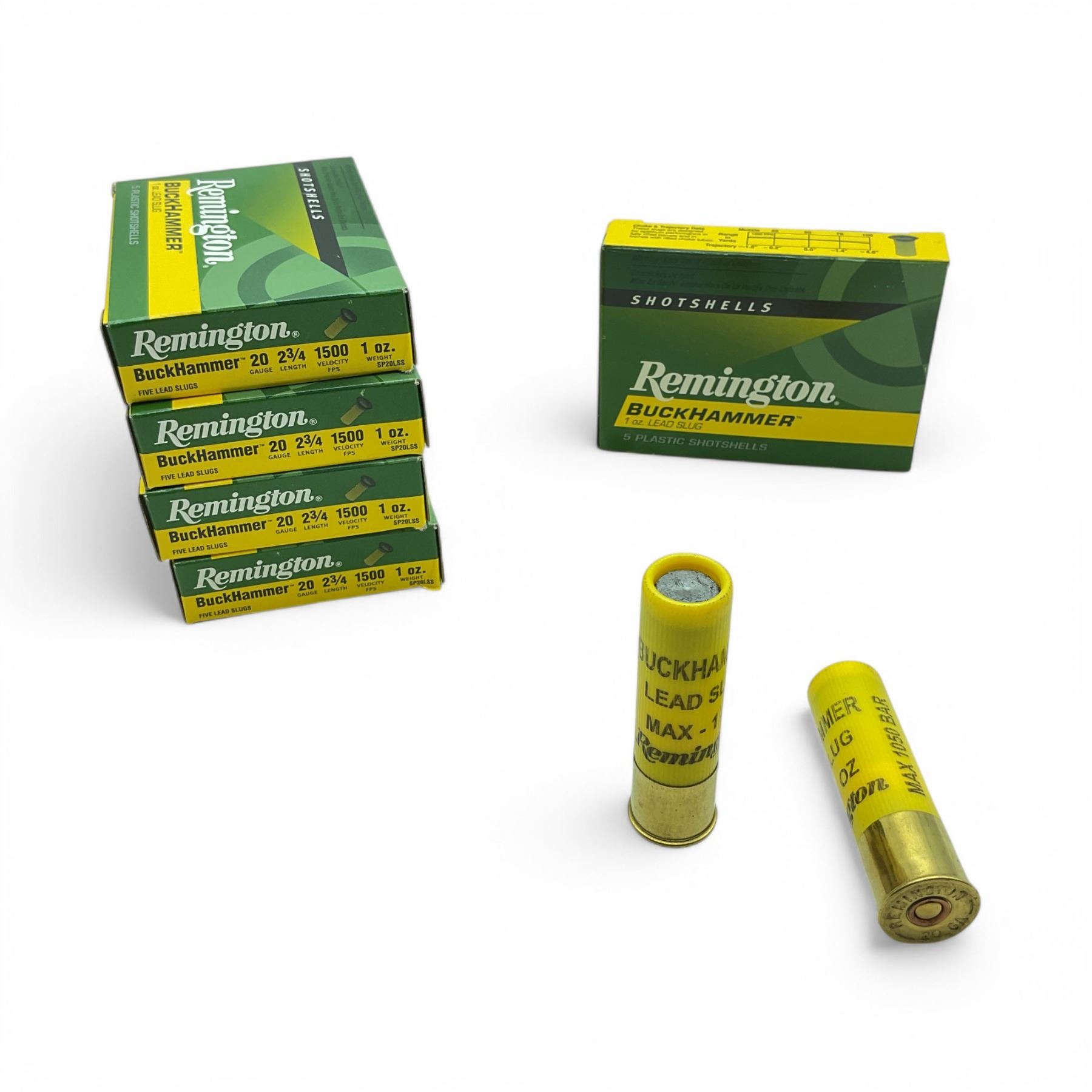 Remington BuckHammer 20 Ga, 2-3/4" Lead Slug Ammunition, 25 Rounds