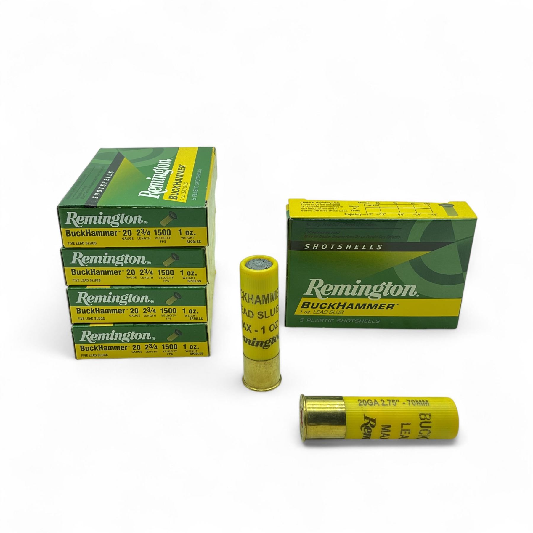Remington Buckhammer 20 Ga, 2-3/4", 1oz Slug Ammunition, 25 Rounds