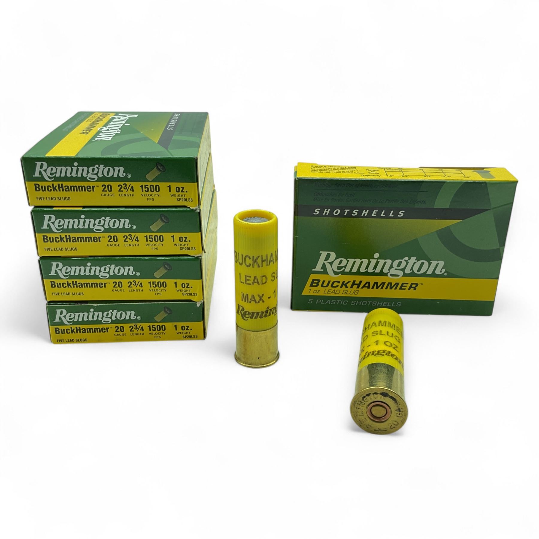 Remington Buckhammer 20 Ga, 2-3/4", 1oz Slug Ammunition, 25 Rounds