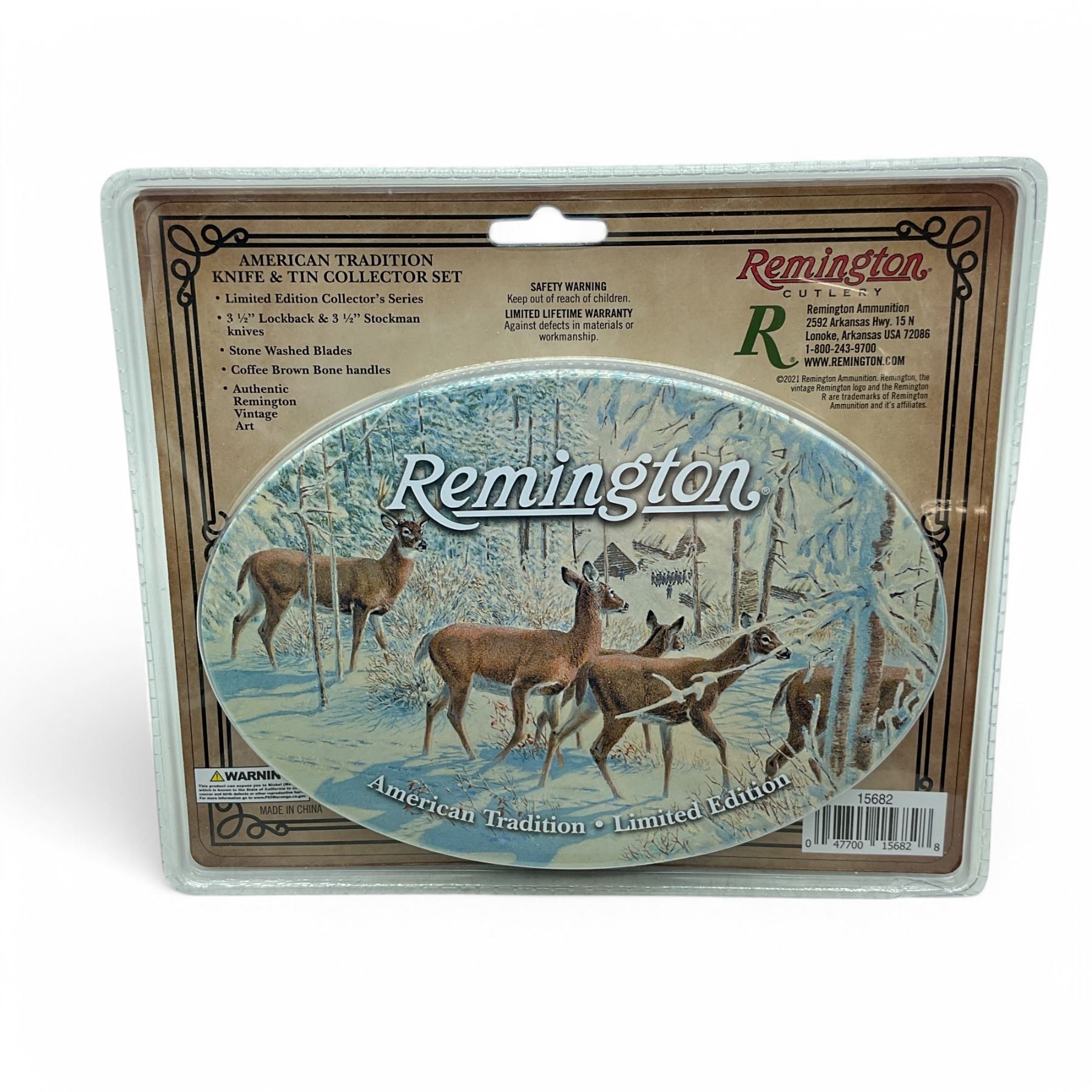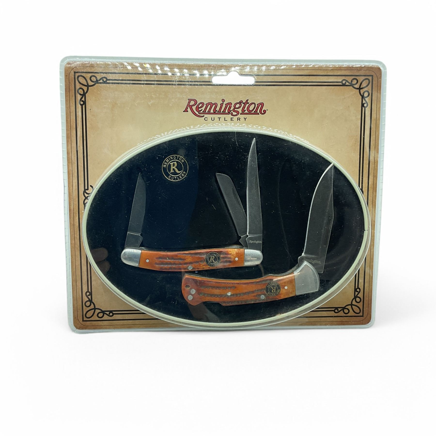 Remington Cutlery 3 1/2" Lockback and 3 1/2" Stockman Knives in Tin, New