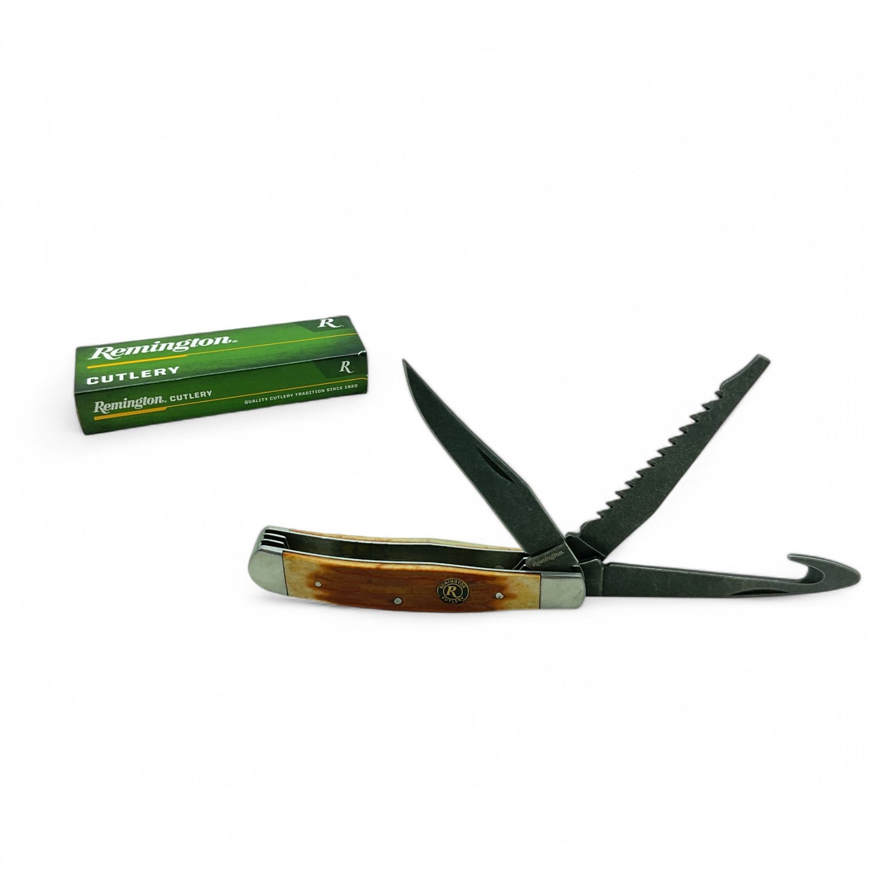 Remington Cutlery Backwood Trapper Multi-Blade Folding Knife, 3.25" Blade, 3.25" Hook, 3.25" Saw Blade