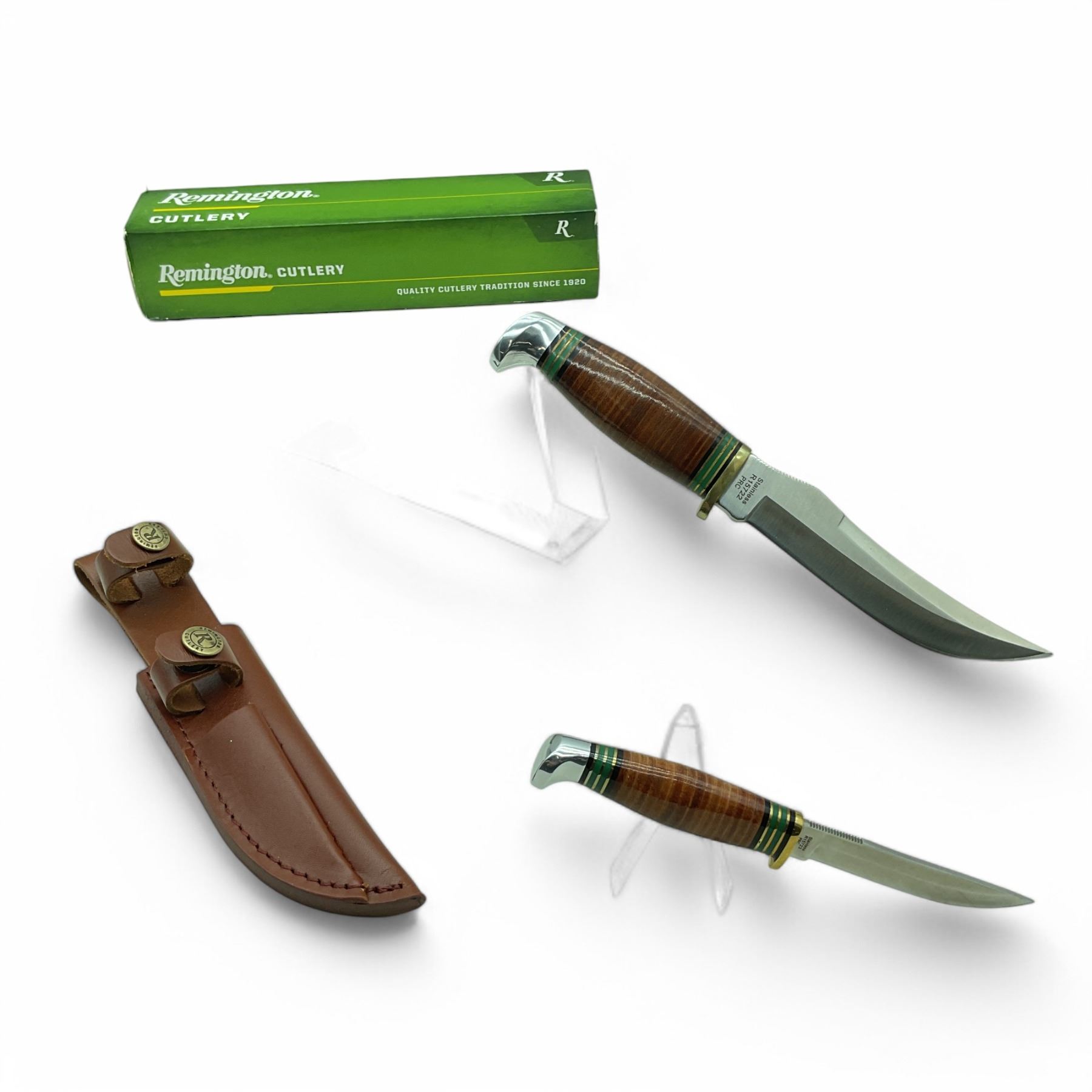 Remington Cutlery Stacked Leather Piggy Back Set with Sheath, 3" and 5.75" Fixed Blade Knives