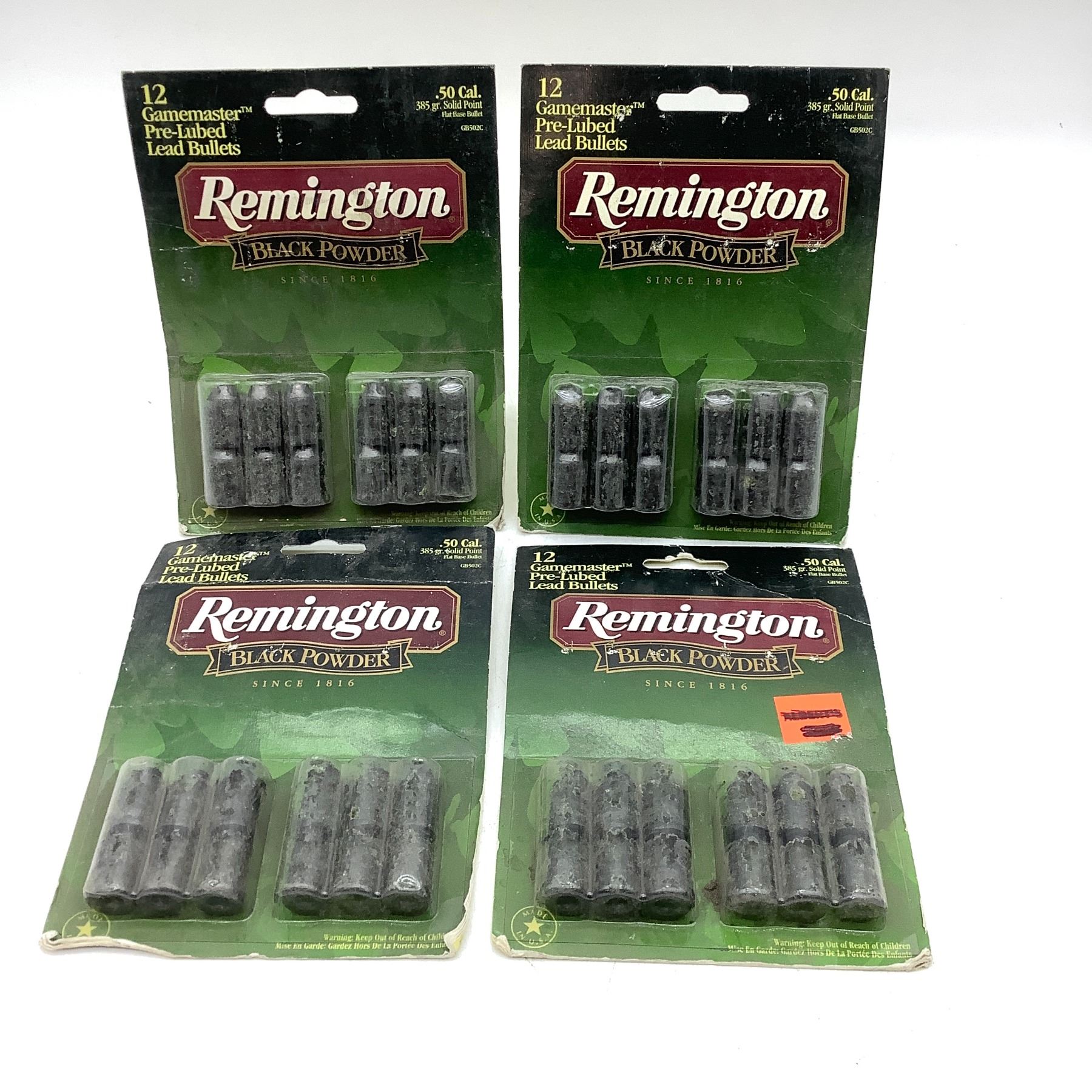 Remington GameMaster 50 Cal 385 Grain Pre Lubed Muzzle Loading Lead Projectiles, 48 Qty