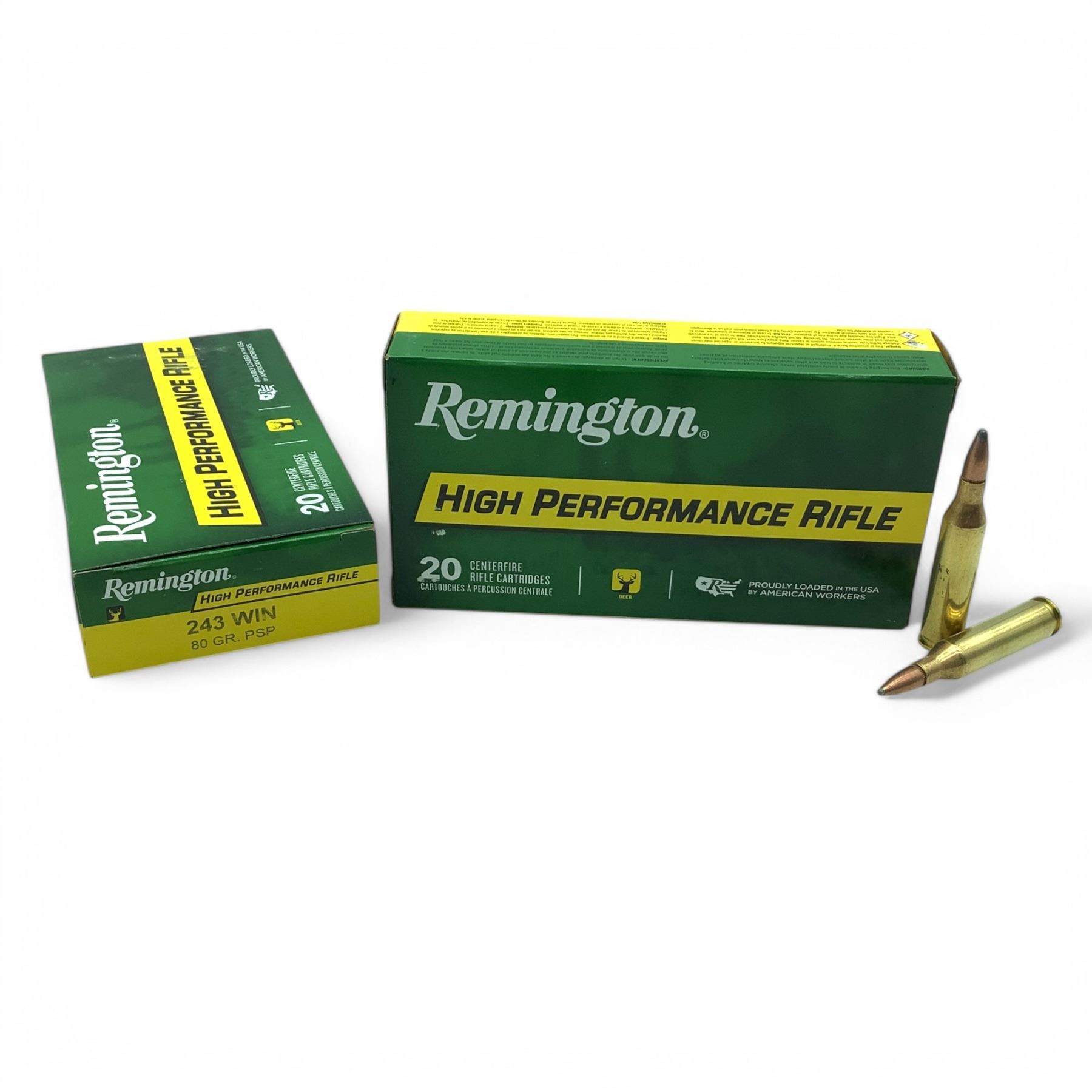 Remington High Performance Rifle 243 Win 80 Grain PSP Ammunition, 40 Rounds