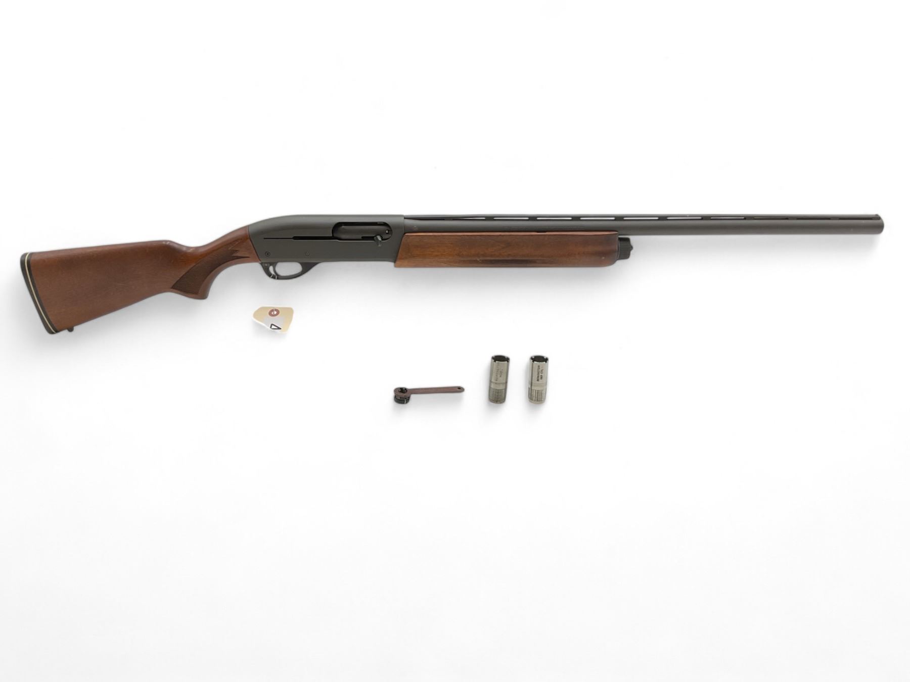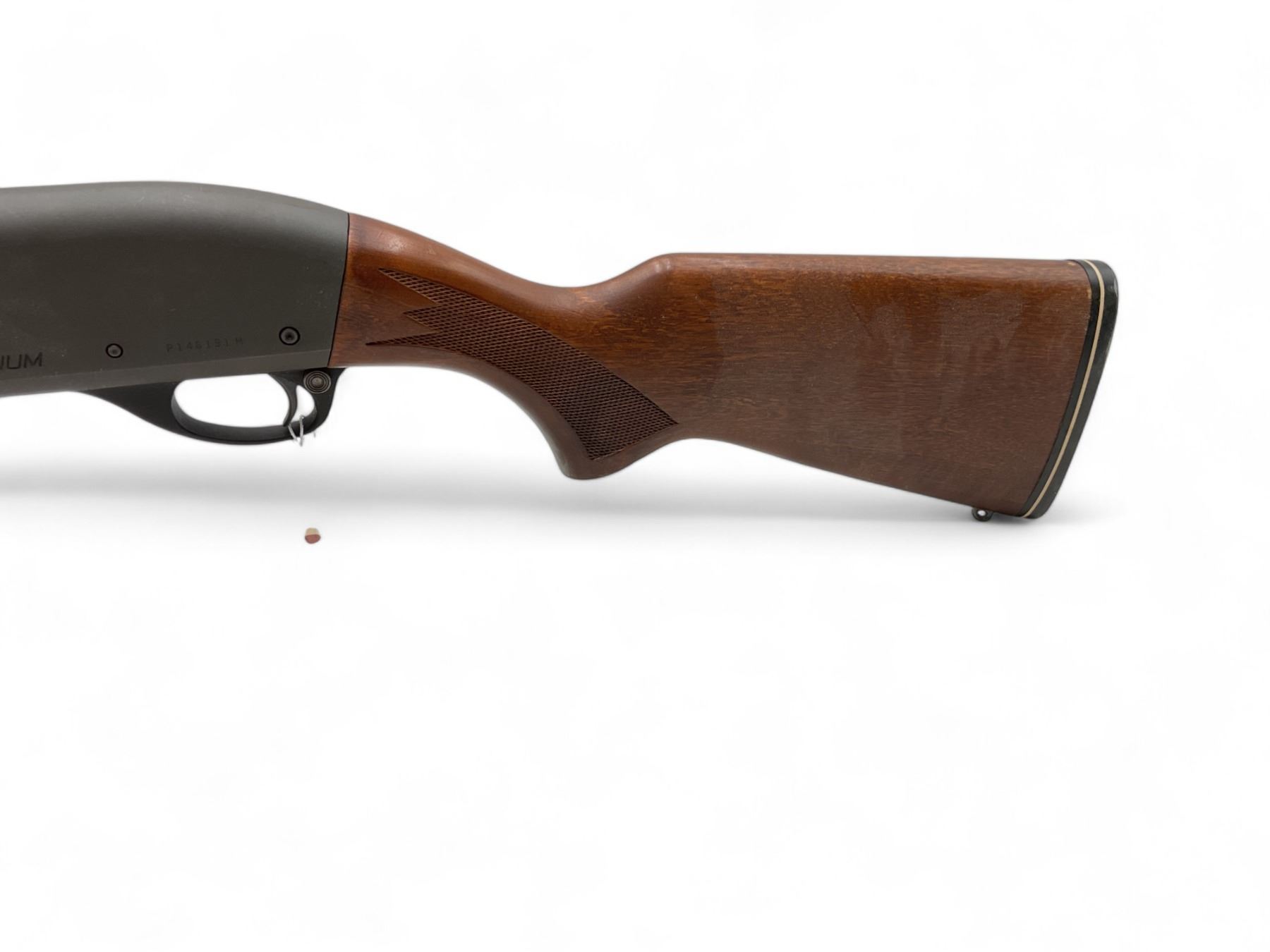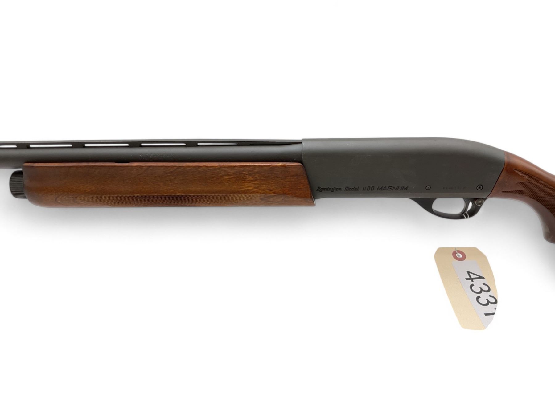 Remington Model 1100 Magnum Semi Auto 12Ga Shotgun 3" Chamber 25.5" Barrel Wood Stock. Vent rib with bead sight, comes with removable choke. Custom rear stock with 12.5" Length of Pull. This is a non-restricted firearm.