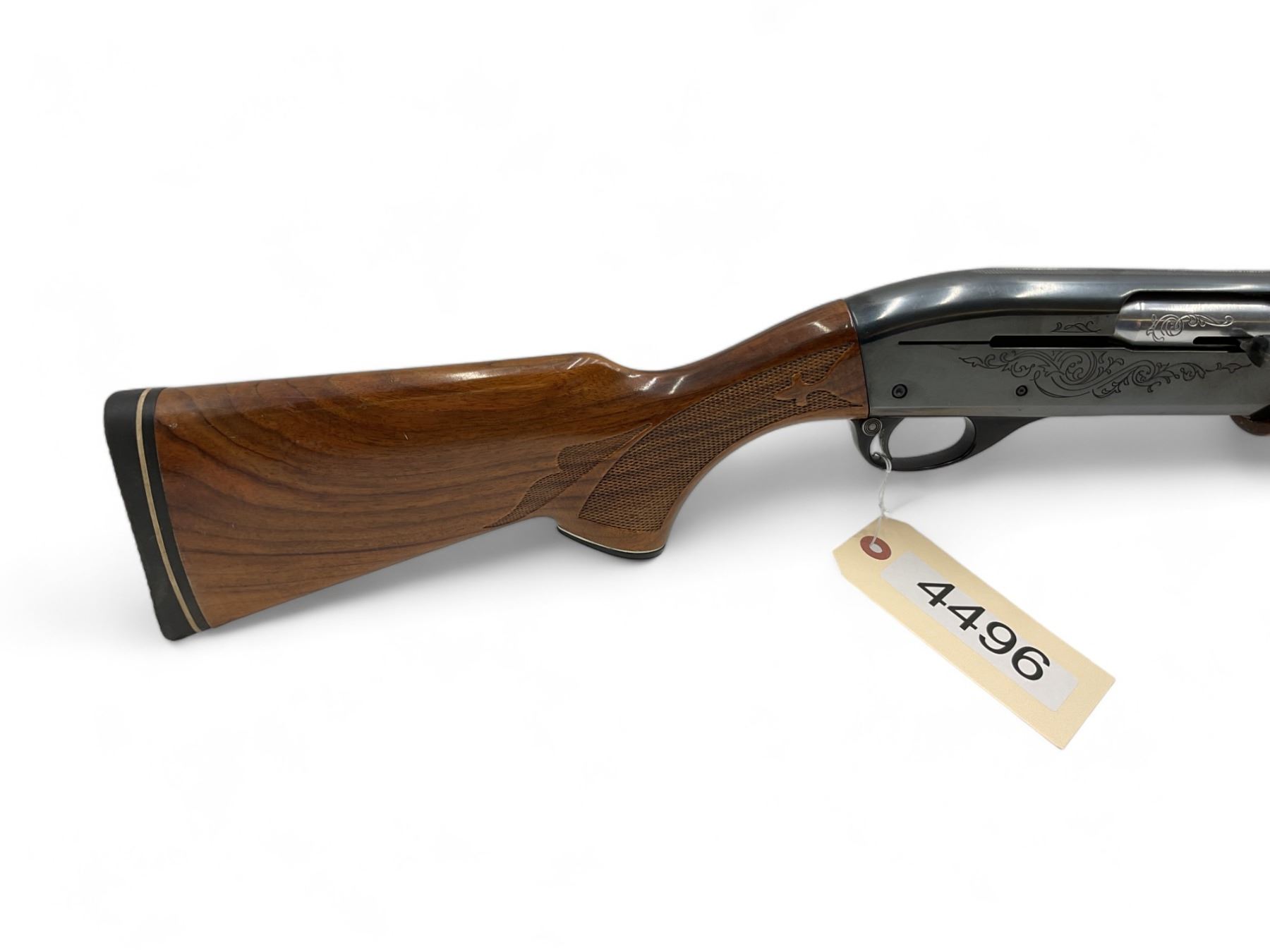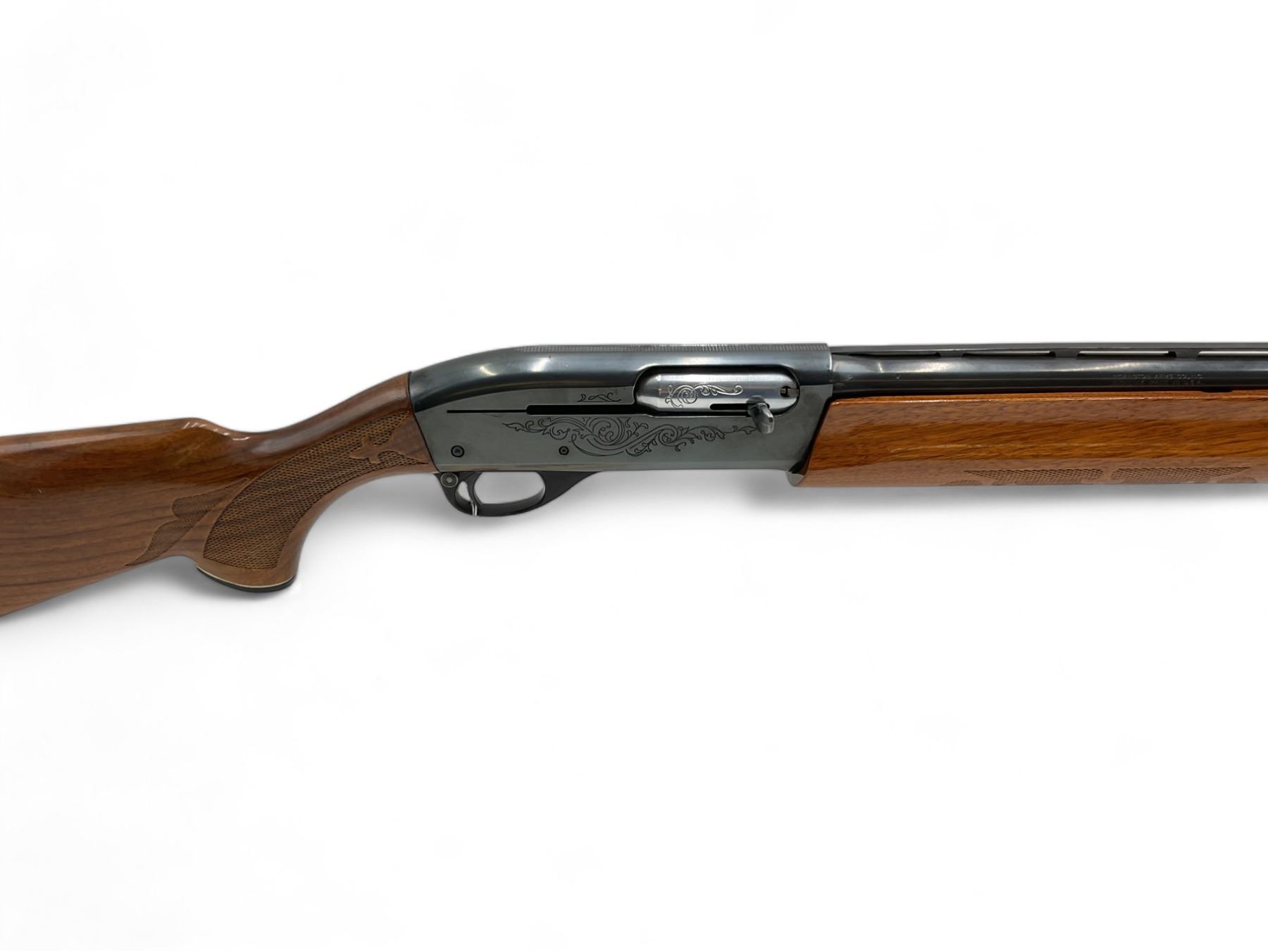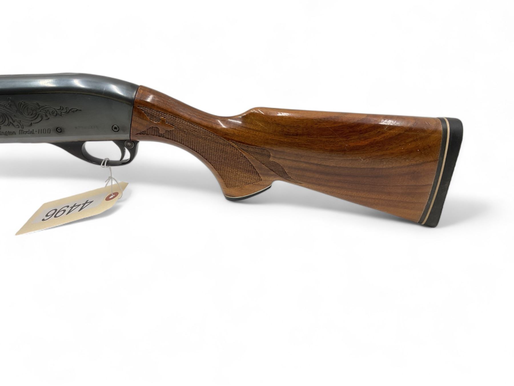 Remington Model 1100 Semi Auto 12Ga Shotgun 2.75" Chamber 28" Vent Rib Barrel Wood Stock. Fixed choke, bead sight. Custom rear stock with 12.5" length of pull. This is a non-restricted firearm.