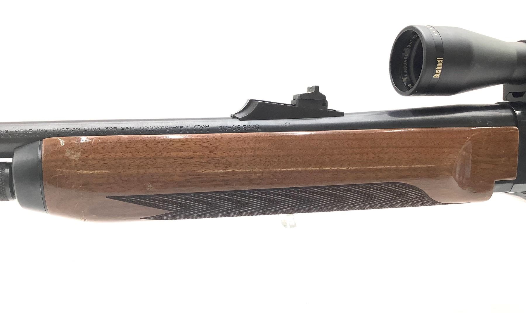 Remington Model 7400 Semi Auto Rifle 30-06 Springfield 22" Barrel Wood Stock With Bushnell Elite 3200 1.5-4.5 Scope. Detachable magazine, factory open sights. Receiver drilled and tapped with rail installed. This is a non-restricted firearm.