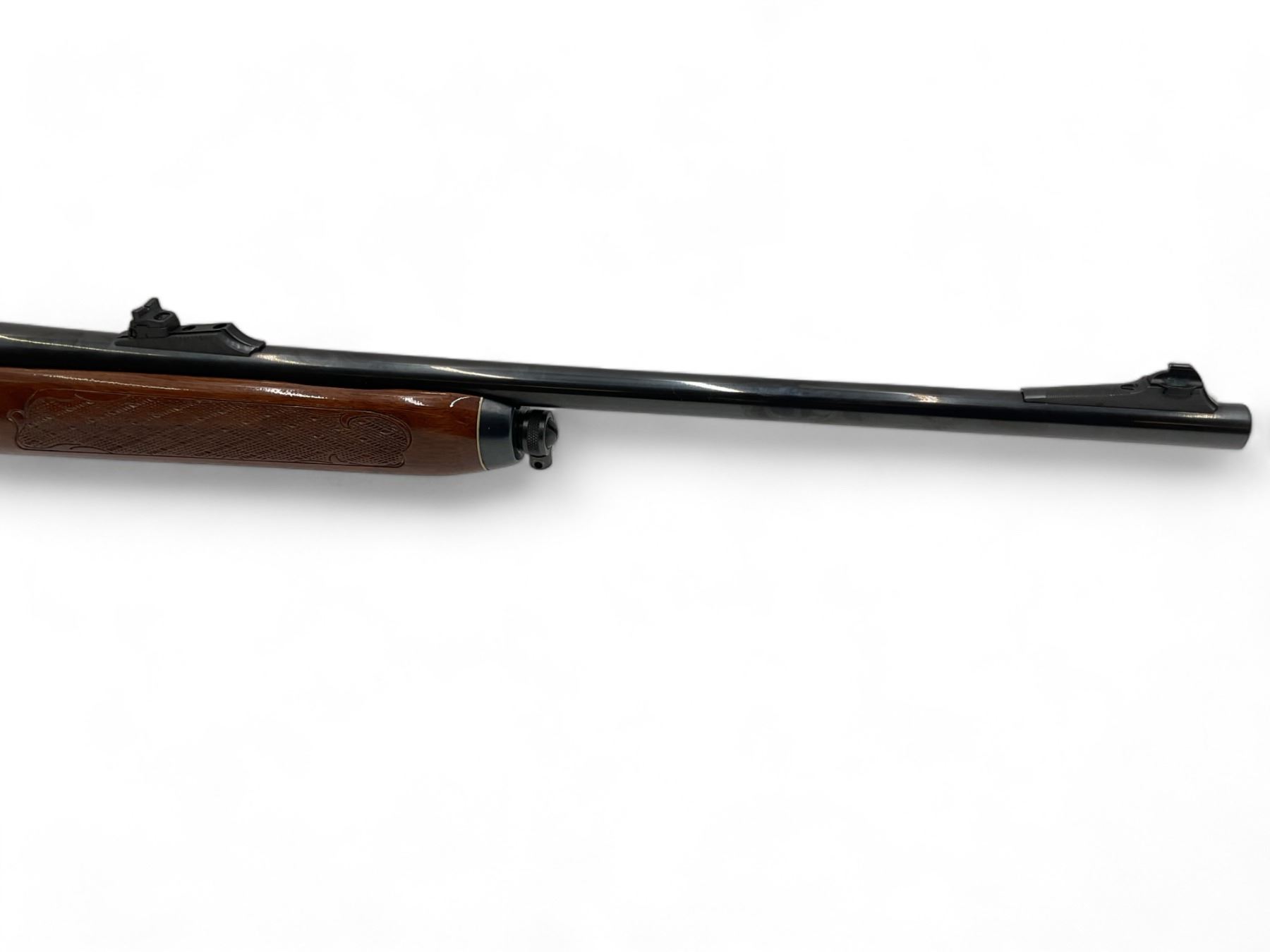 Remington Model 742 Woodsmaster Semi Auto Rifle 308 Win 22" Barrel Wood Stock. Detachable magazine, comes with sling mounts. Ramp front sight, adjustable rear sight. Receiver drilled and tapped with rail installed. This is a non-restricted firearm.