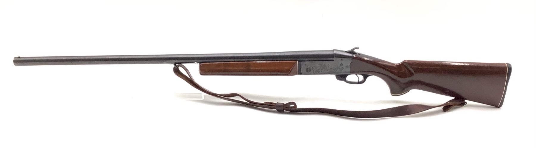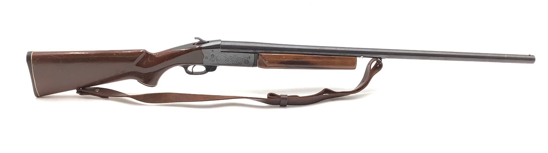 Remington Model 812 Single Shot 12 Ga Shotgun 2 3/4" Chamber 30" Barrel. Bead sight, sling mounts present and includes leather sling. Rear wood stock scratched and nicked, front wood stick scratched and is missing small white piece. Metal finish shows wear and has some marks. This is a non-restricted firearm.