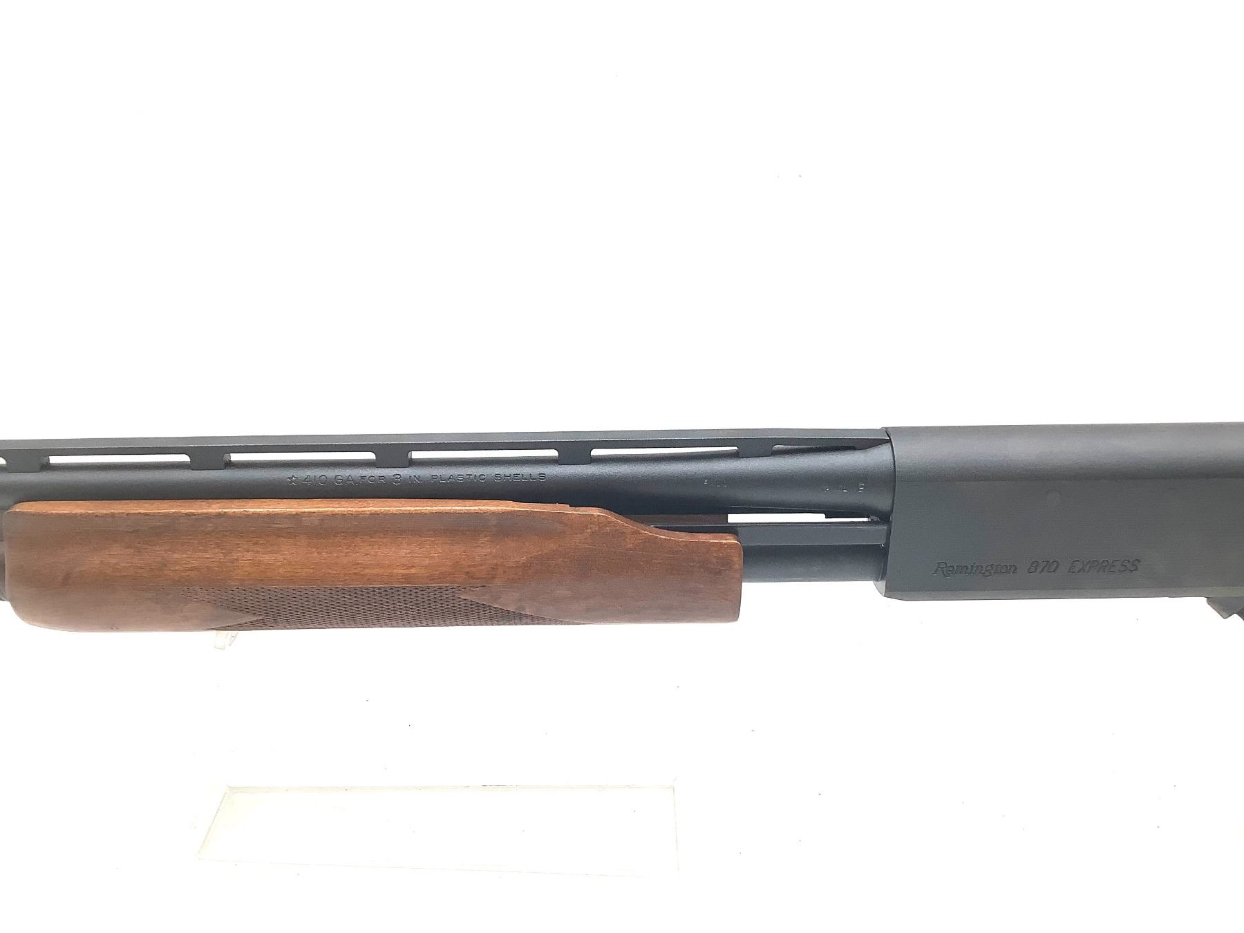 Remington Model 870 Express Pump Action 410 Shotgun 3" Chamber 25" Barrel Wood Stock. Vent rib barrel with bead sight, fixed choke. This is a non-restricted firearm.